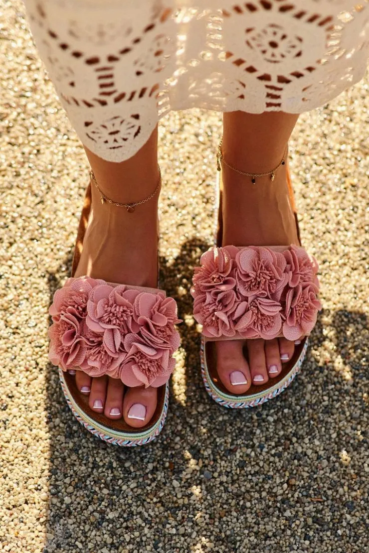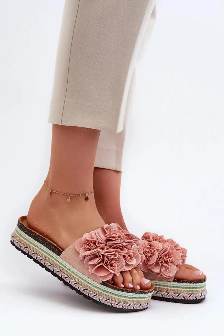 Damskie klapki na masywnej platformie to idealny wybór dla kobiet ceniących sobie modny wygląd i wygodę. Ten stylowy model przyciąga wzrok nie tylko swoją masywną platformą, ale również uroczymi kwiatkami, które zdobią przód obuwia. Idealne na letnie dni, te klapki są doskonałym dodatkiem do sukienek, spódnic, a także jeansów i szortów. Przy wyborze rozmiaru prosimy sugerować się tabelą rozmiarów.
