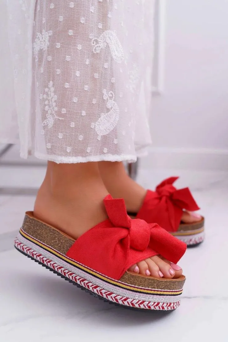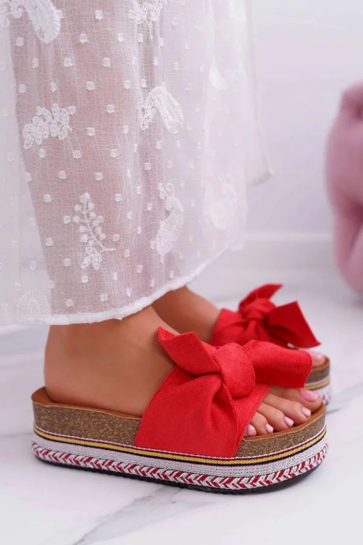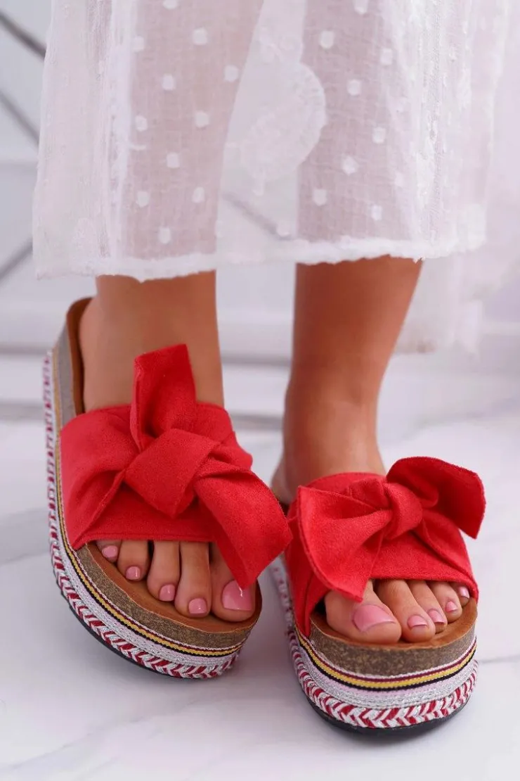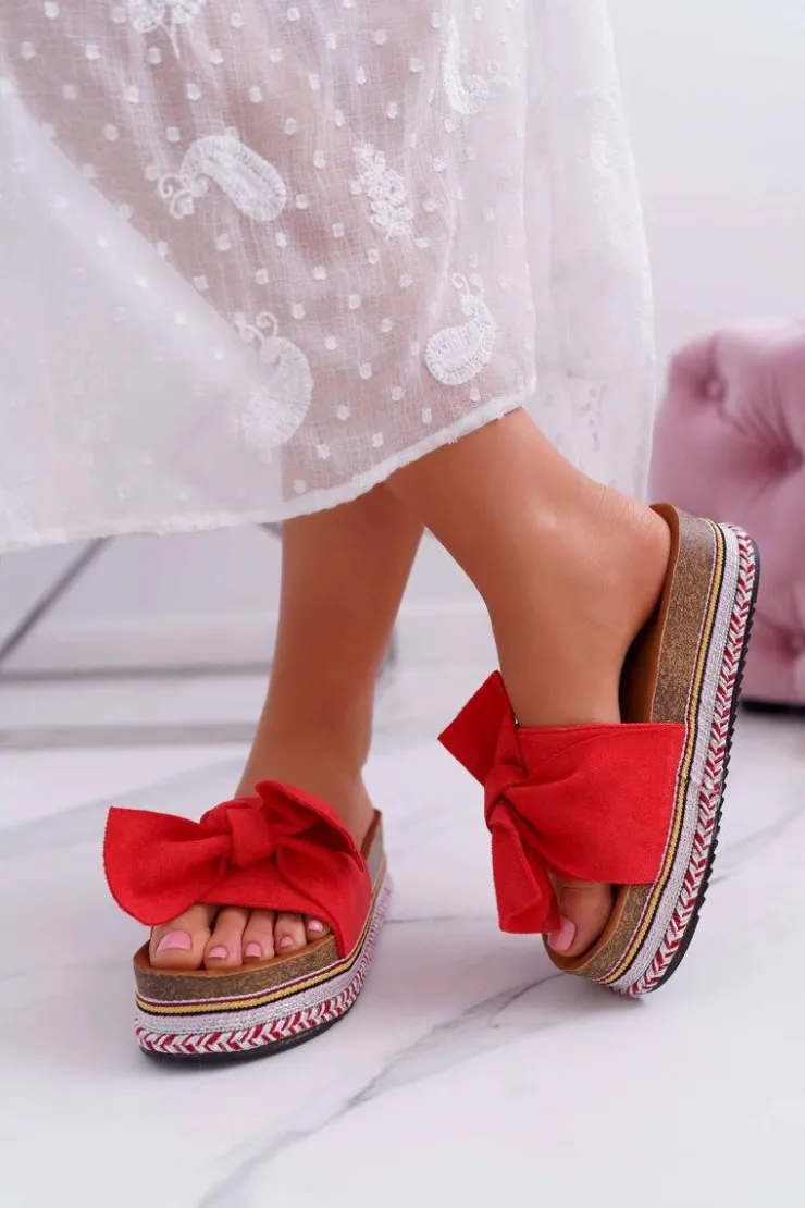 Damskie Boto Klapki Damskie Na Platformie Z Kokardą Czerwone Chantal