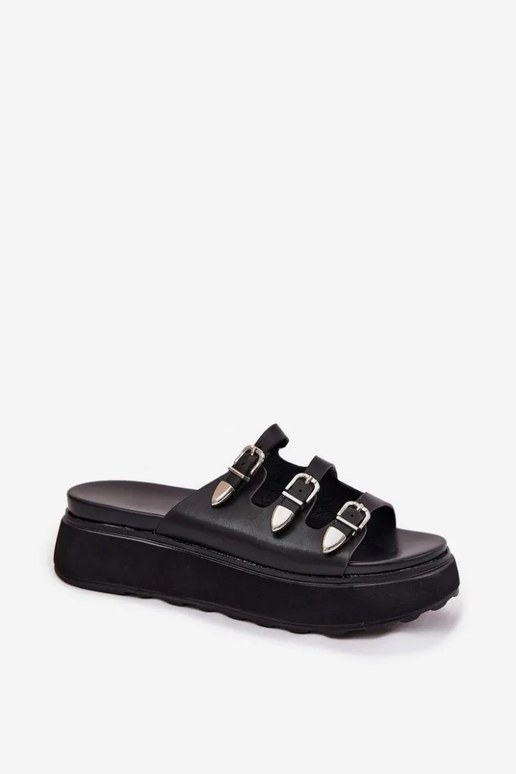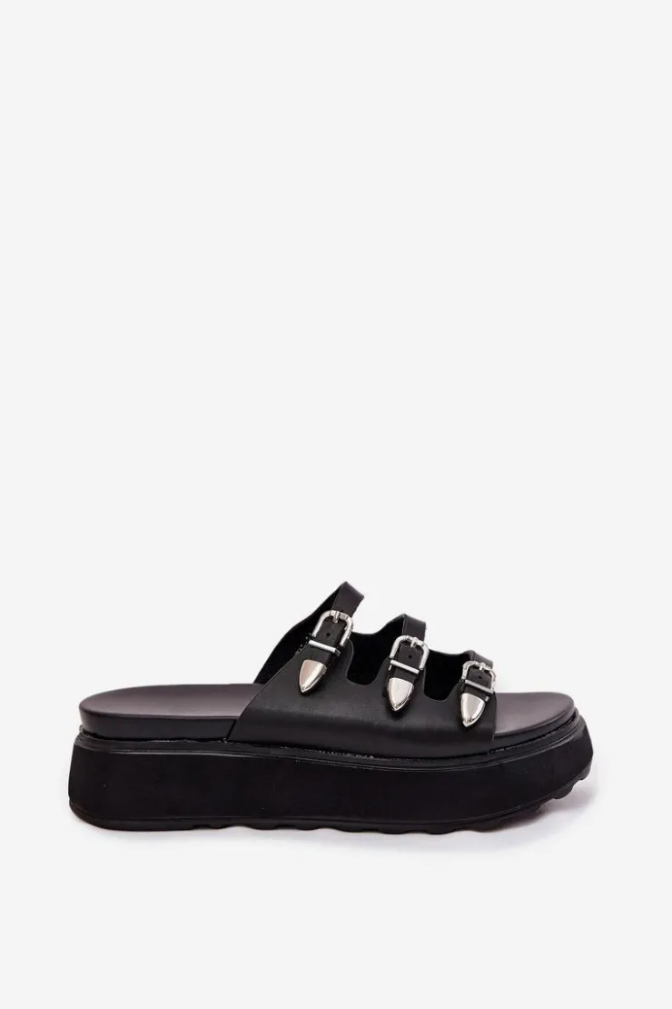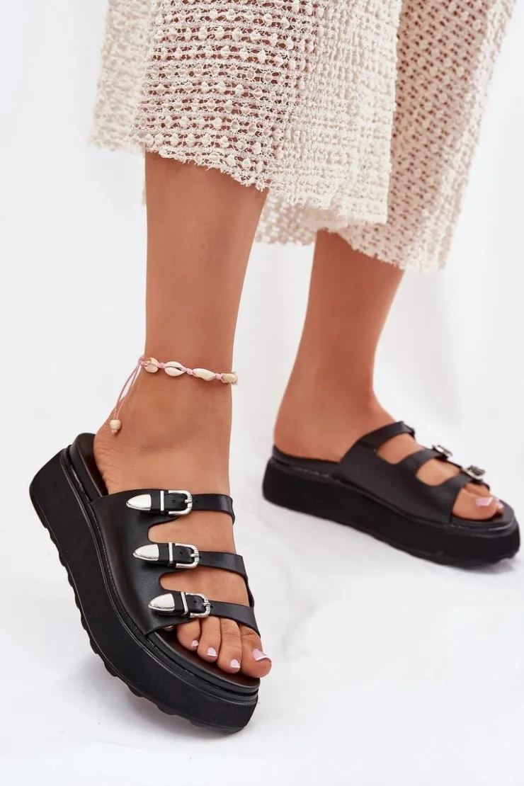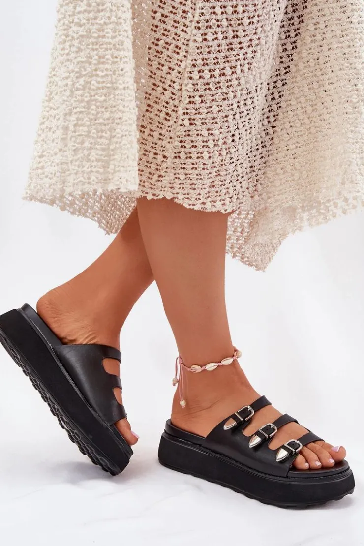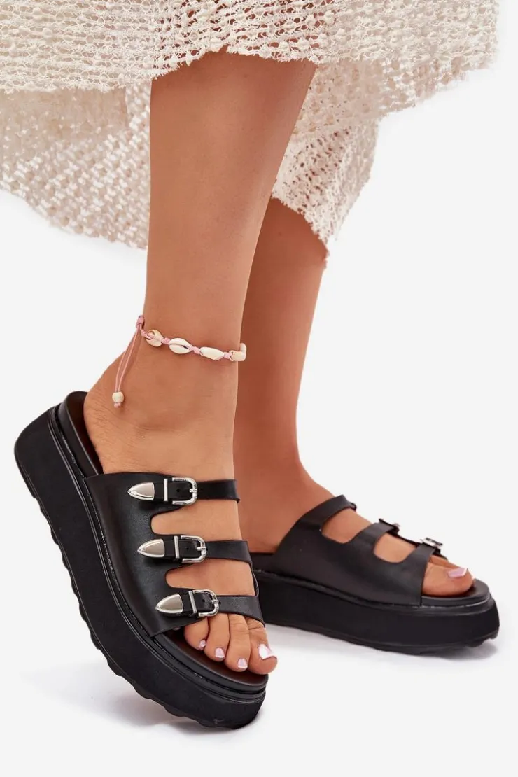 Damskie Boto Klapki Damskie Na Platformie Z Paskami Czarne Nimiotte