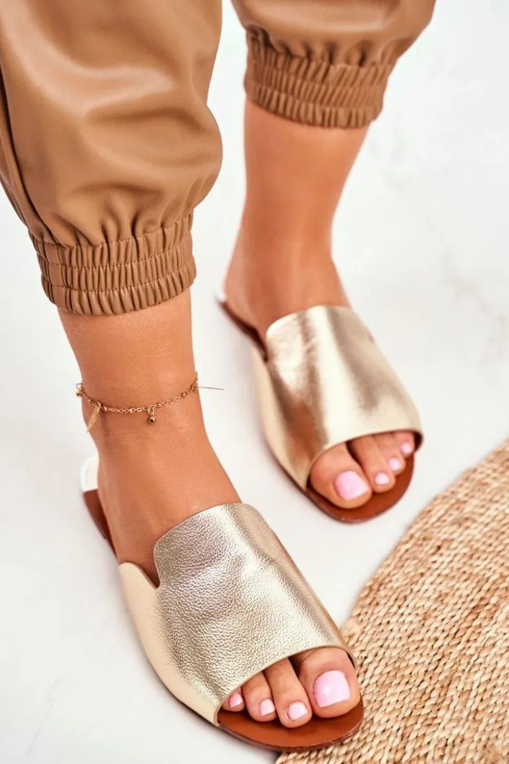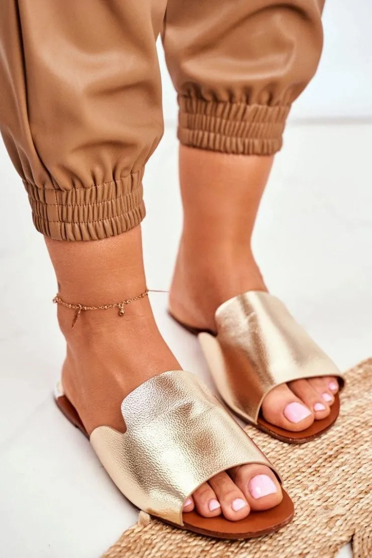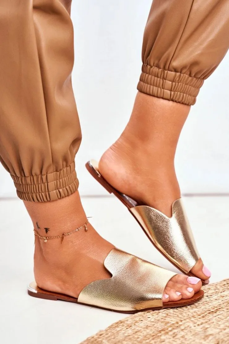 Damskie Boto Klapki Damskie Płaskie Złote Mimios
