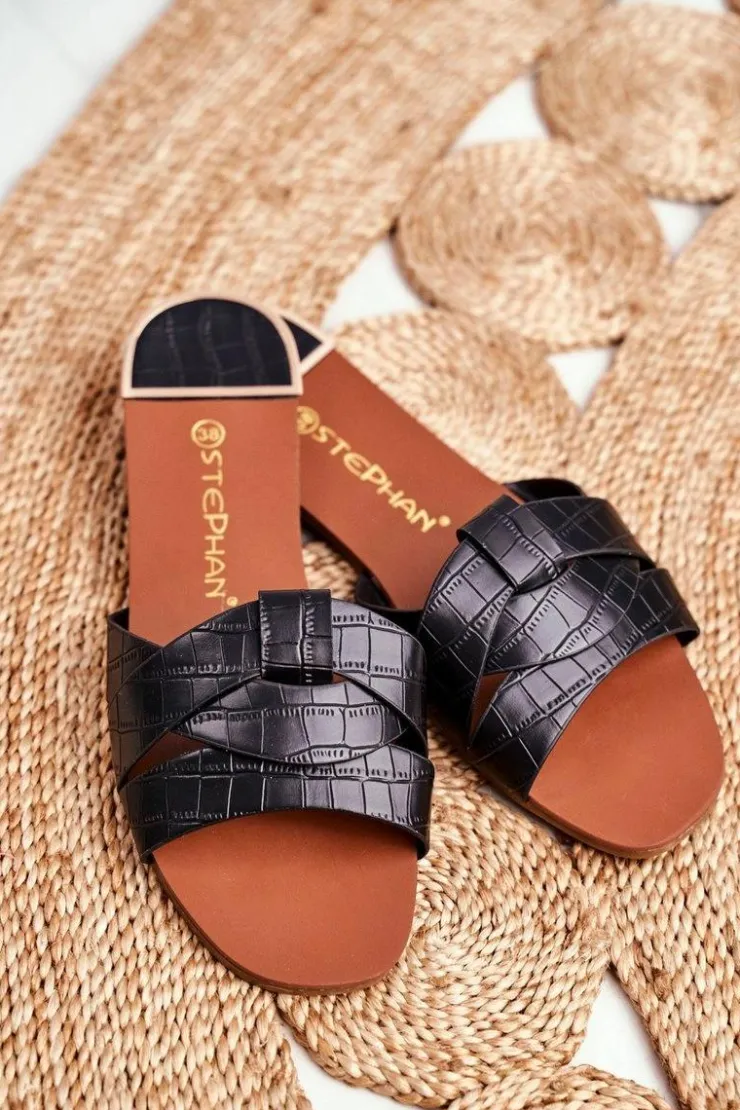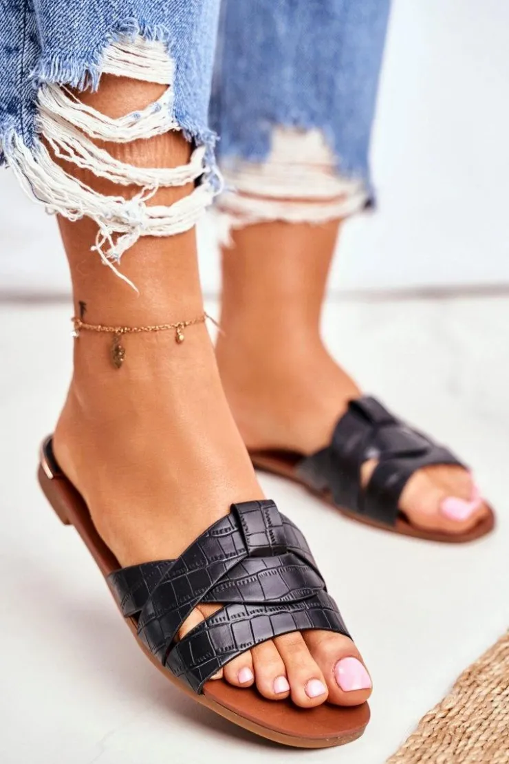 Damskie Boto Klapki Damskie Skóra Węża Czarne Chance