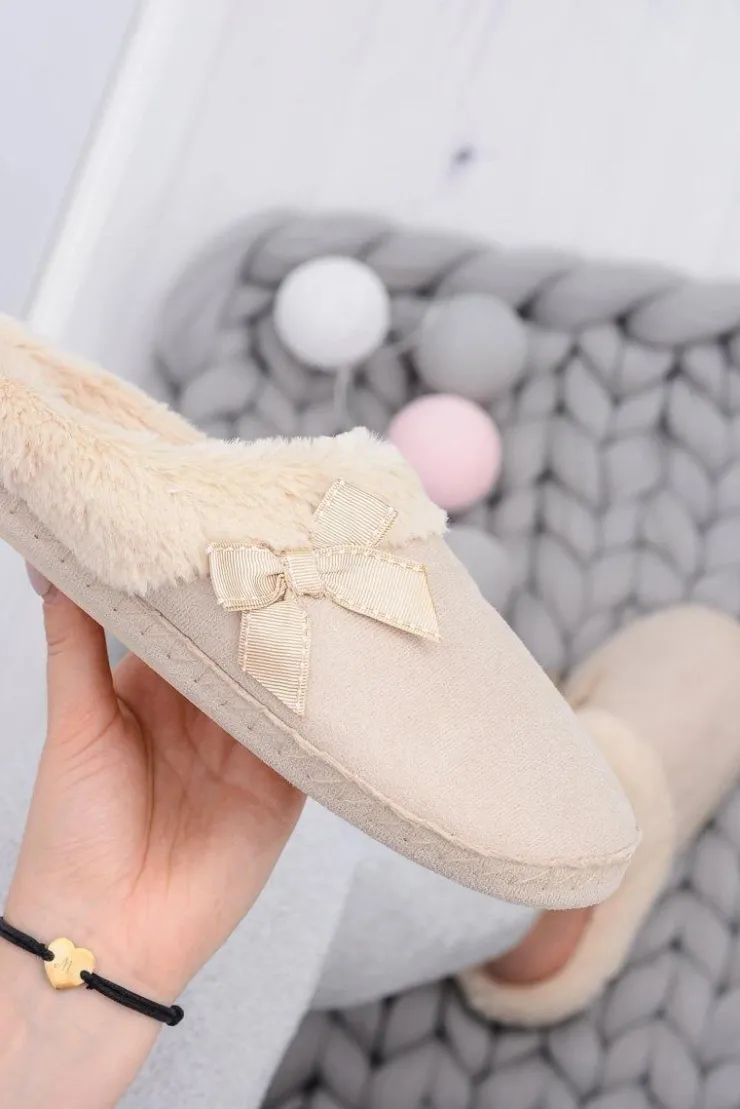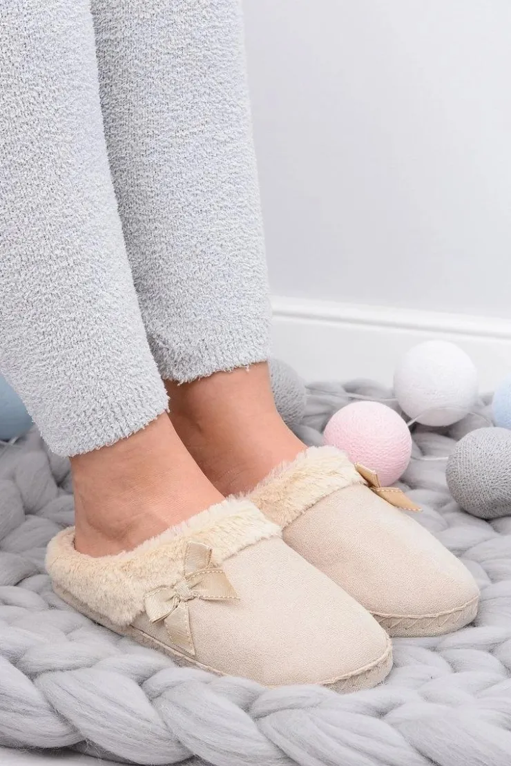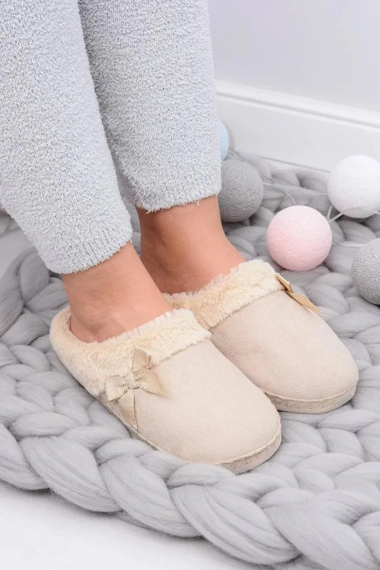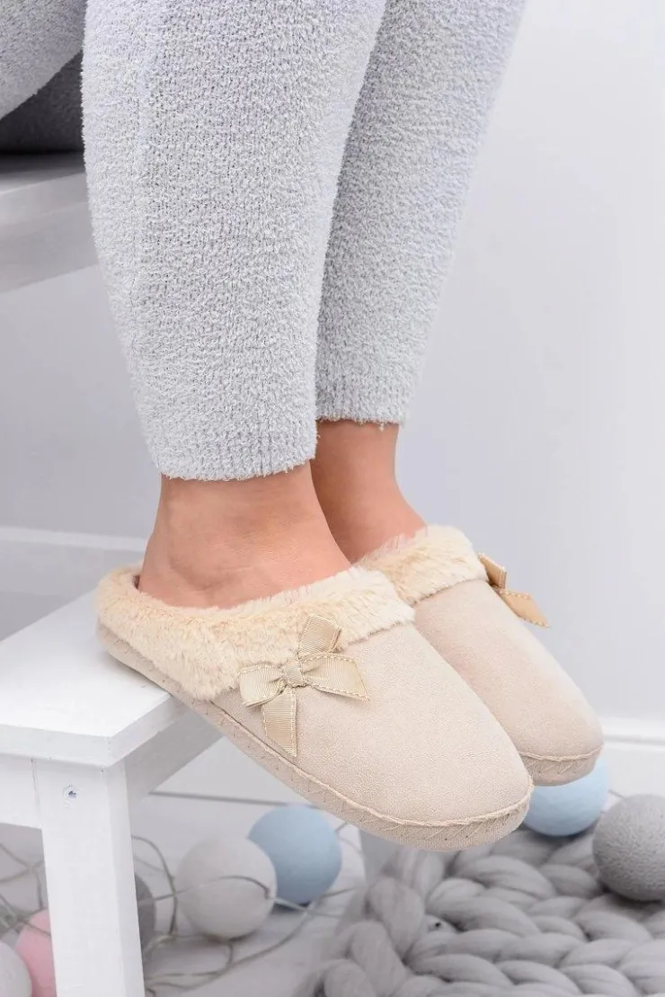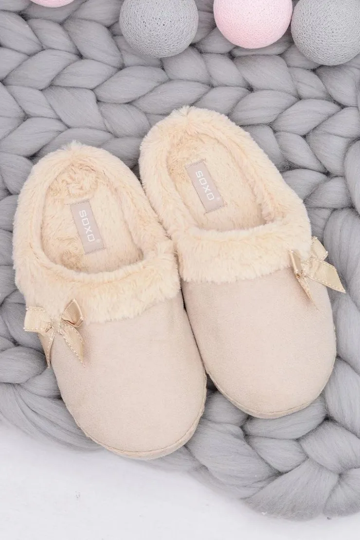 Damskie Boto Klapki Damskie Z Futerkiem I Kokardką SOXO Beżowe