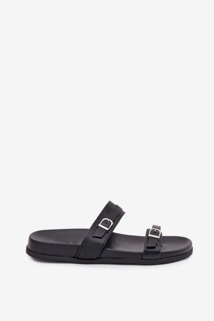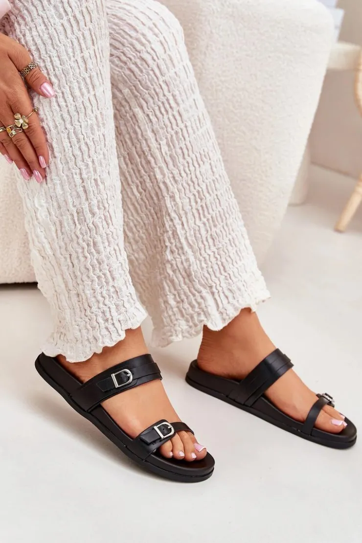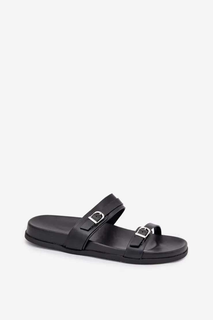 Damskie Boto Klapki Damskie Z Klamrami Czarne Brinella