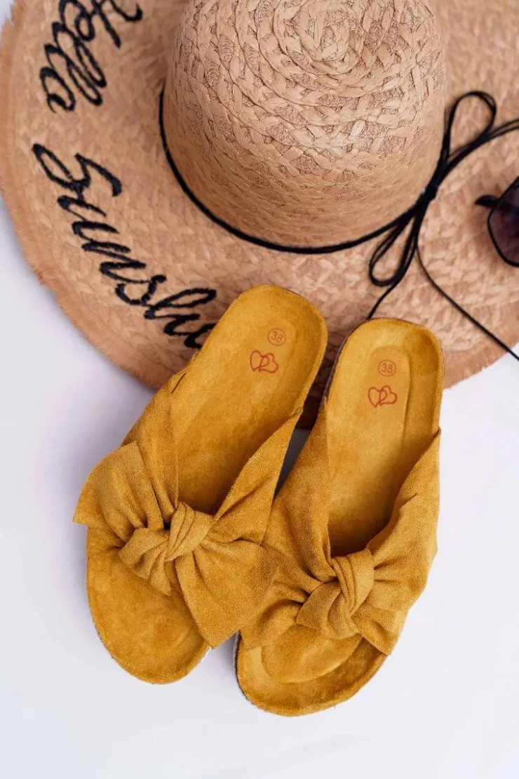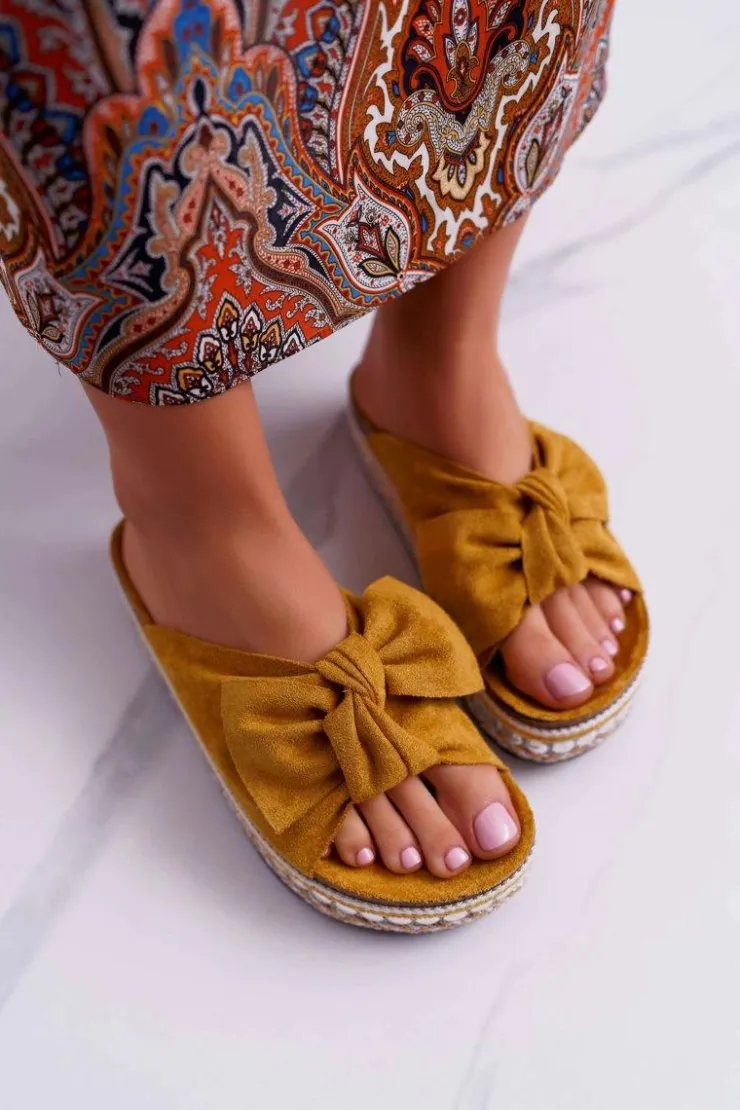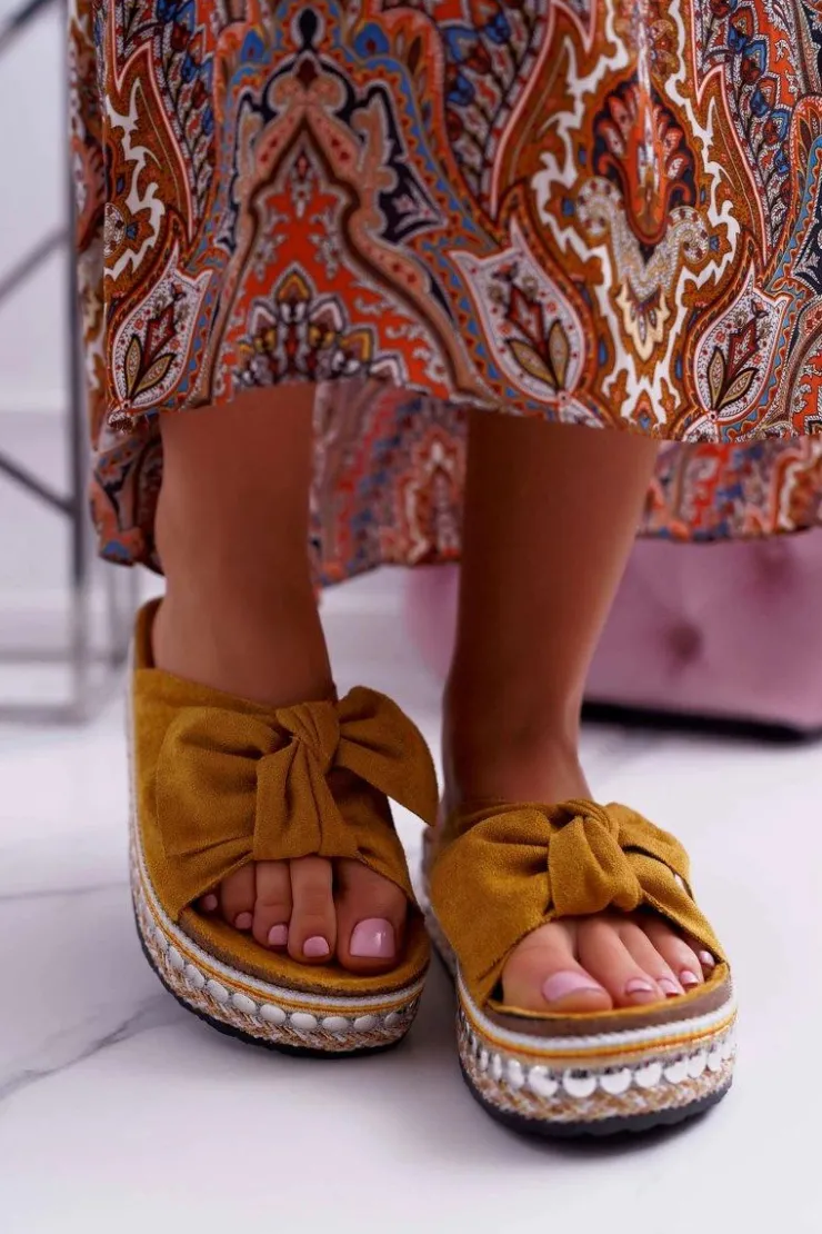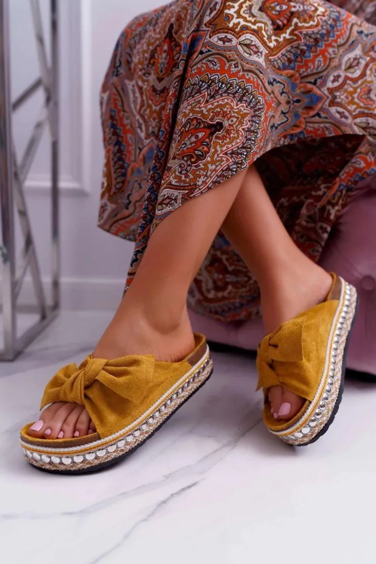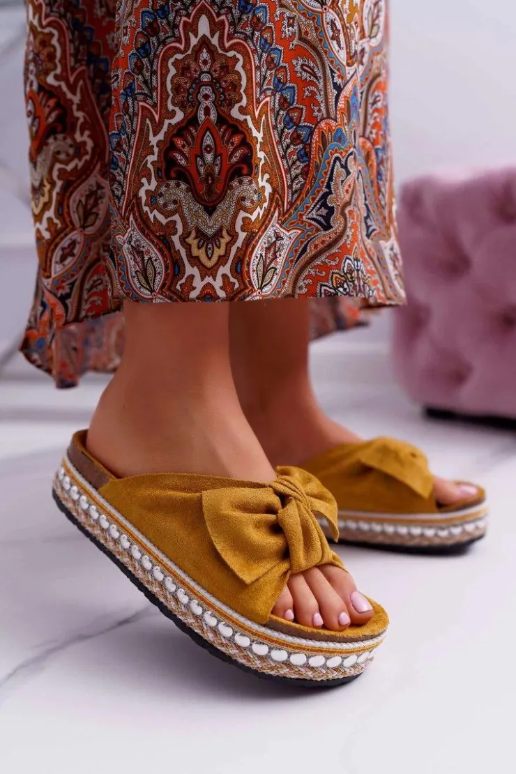 Damskie Boto Klapki Damskie Z Kokardami Gruba Podeszwa Żółte Milady