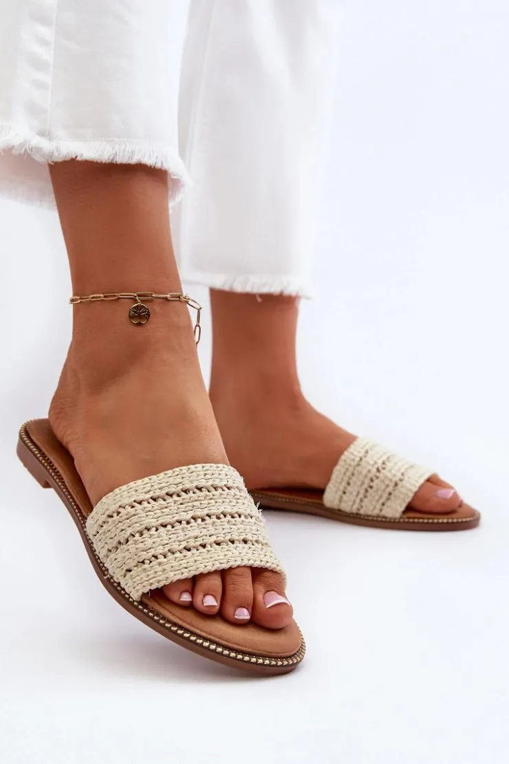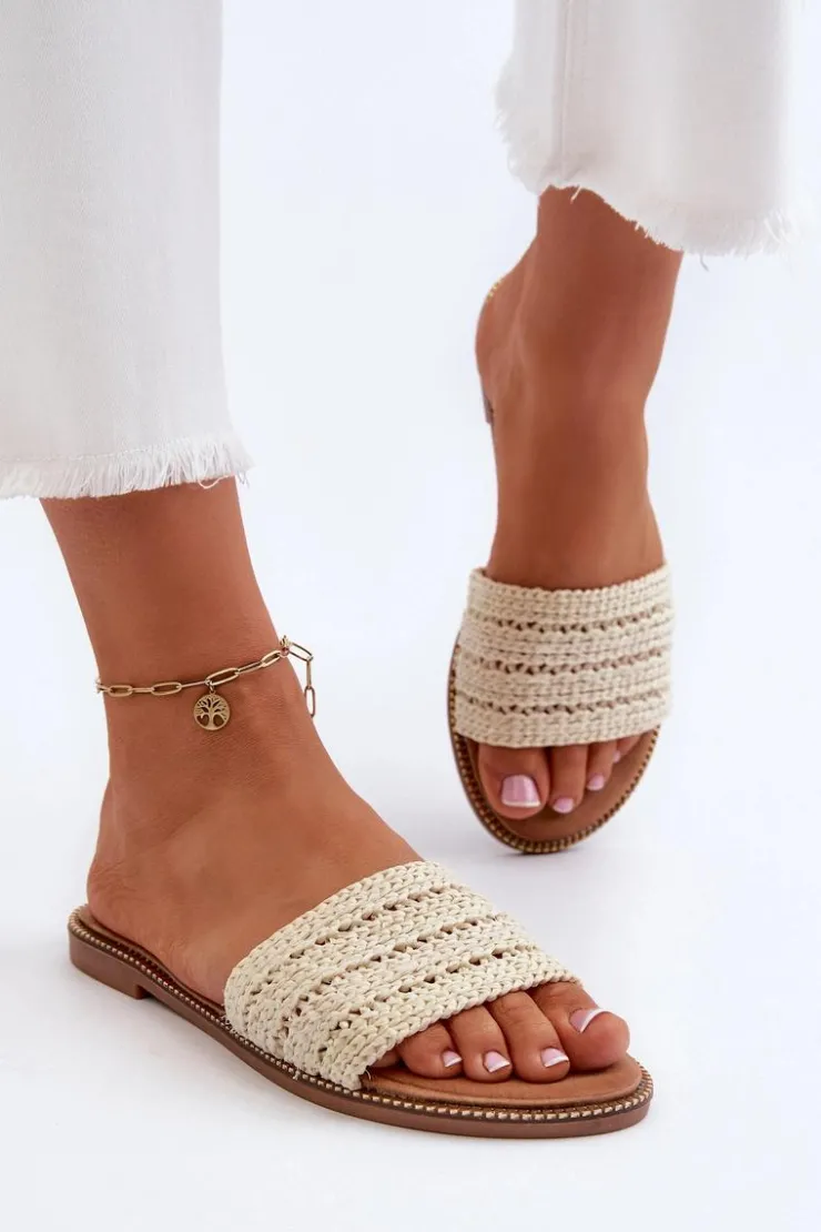 Klasyczne klapki damskie na płaskim obcasie to niezawodny wybór na letnie dni. Prosty design sprawia, że doskonale pasują do wielu letnich stylizacji. Z przodu szeroki pasek z plecionką. Te klapki są doskonałym wyborem dla kobiet ceniących zarówno styl, jak i komfort. Przy wyborze rozmiaru prosimy sugerować się tabelą rozmiarów.