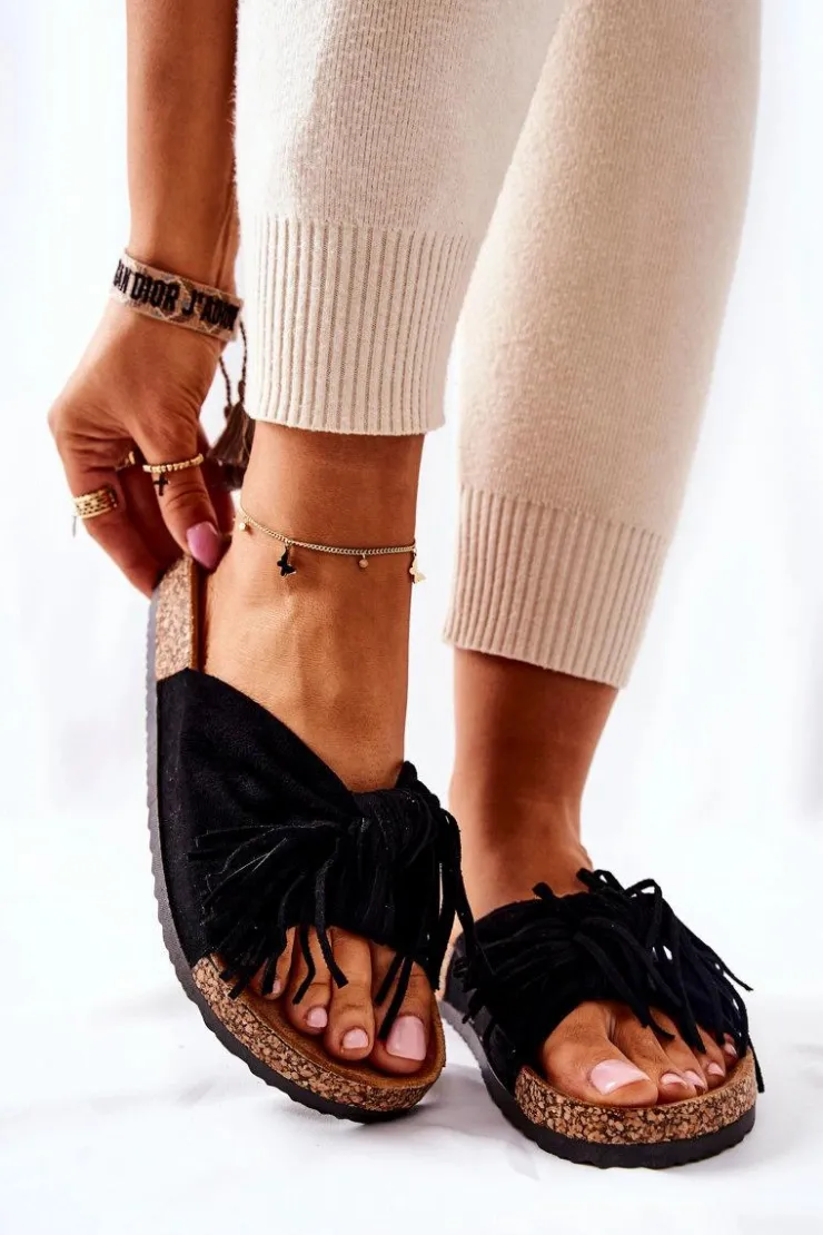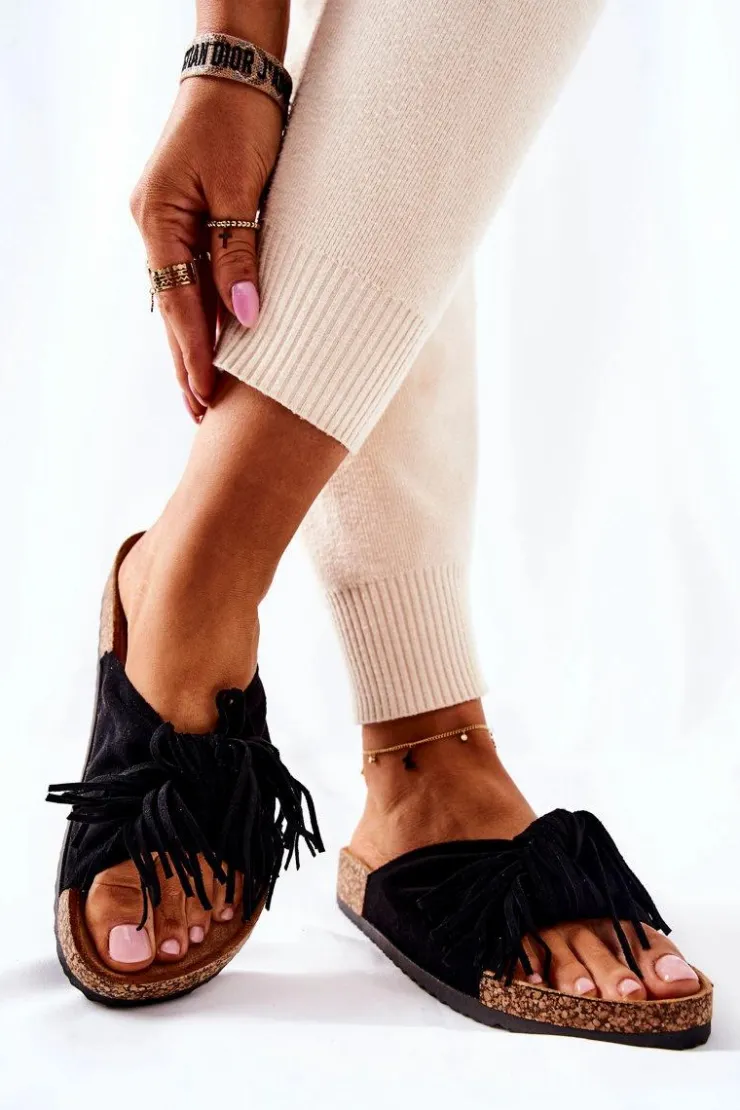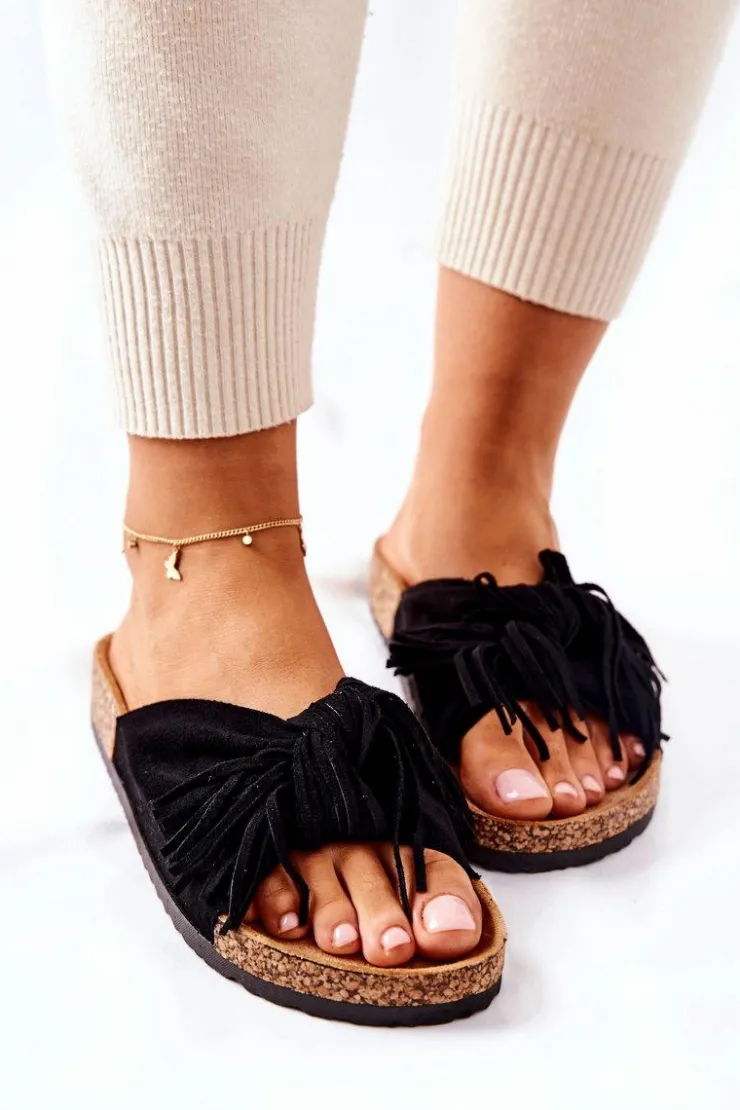 Damskie Boto Klapki Na Korkowej Podeszwie Czarne Taryne