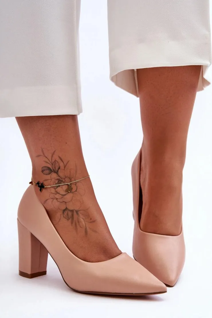 Klasyczne czółenka zostały osadzone na obcasie w postaci stabilnego słupka. Zostały wykonane z eko skóry. Miękka wkładka z delikatną perforacją zapewni komfortowe użytkowanie. Charakterystyczny nosek w szpic optycznie wysmukli nogi. Ten model jest idealny na wiele okazji! Przy wyborze rozmiaru prosimy sugerować się tabelą rozmiarów.