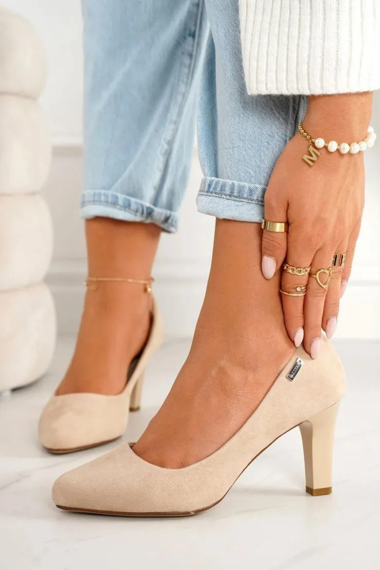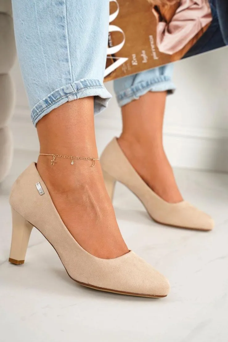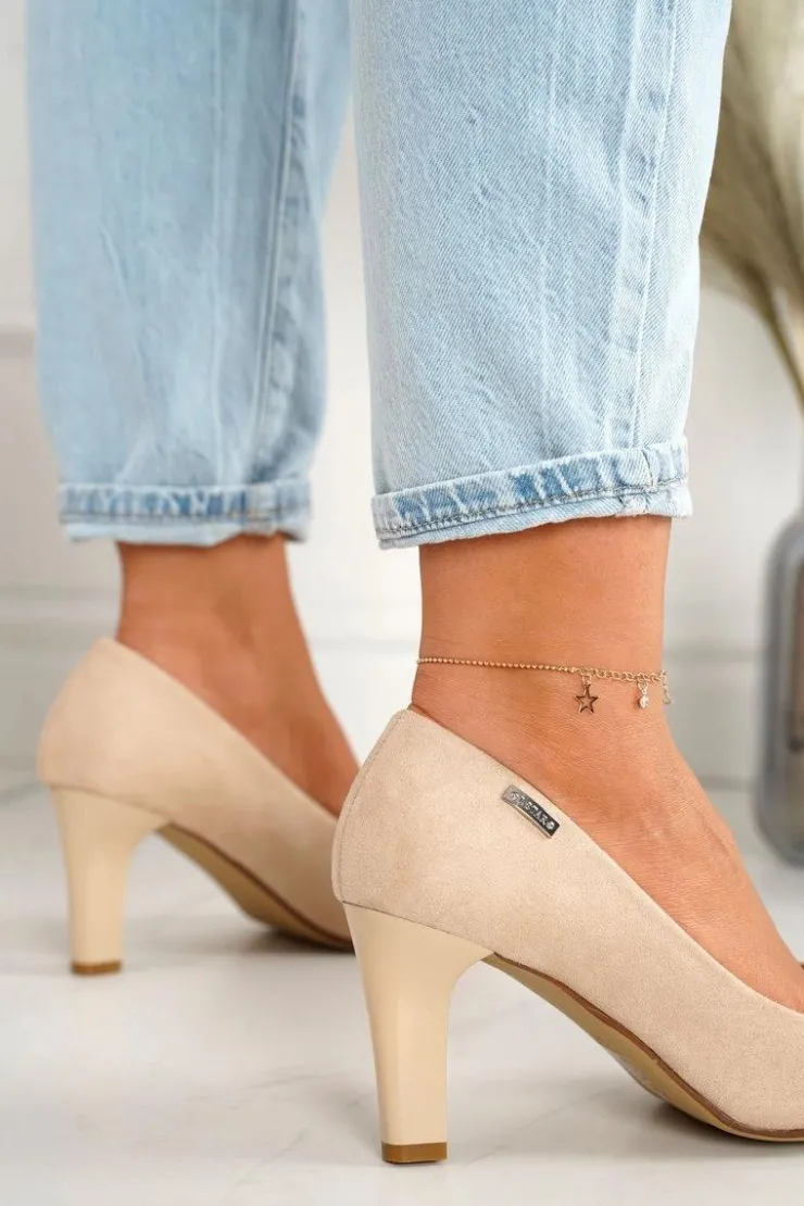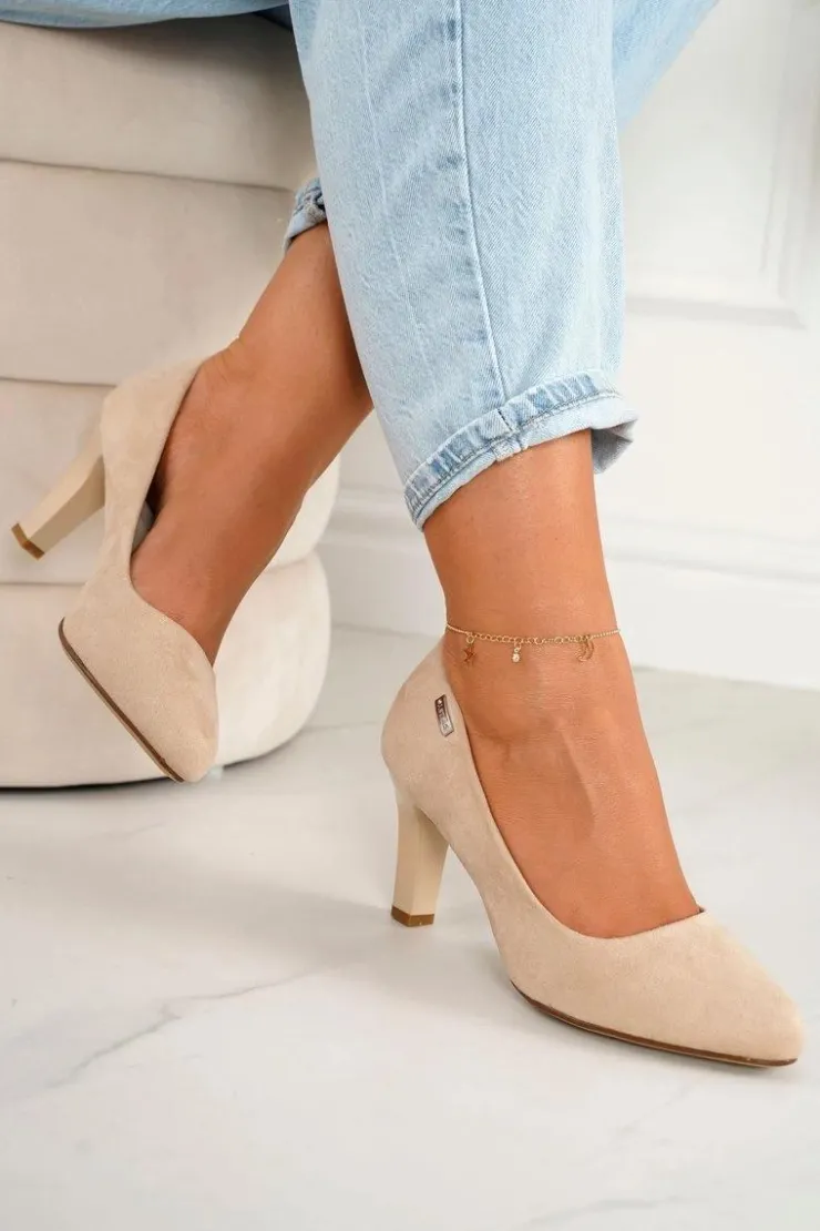 Damskie Boto Klasyczne Czółenka Na Słupku Zamszowe Beżowe Eleanor