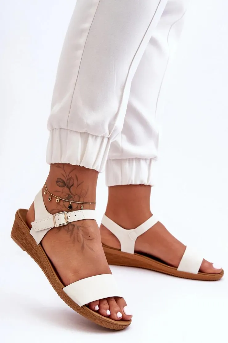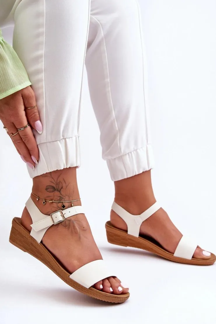 Damskie Boto Klasyczne Sandały Na Niskim Koturnie Białe Arya
