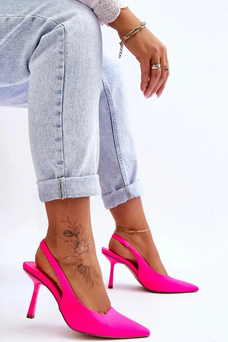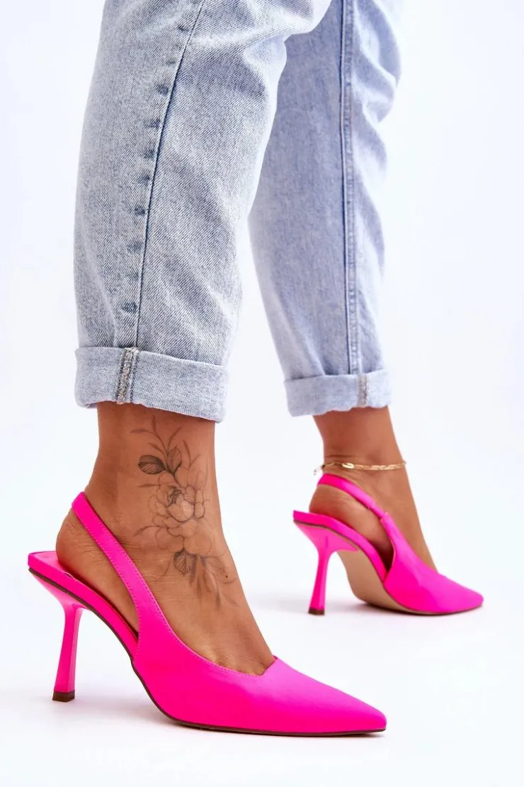 Szpilki powinny znaleźć się w szafie każdej kobiety. Model ten świetnie sprawdzi się zarówno do sukienek, jak i szerokich, eleganckich spodni. Szpilki z noskiem w szpic optycznie wysmuklą nogi. Model ten jest wsuwany z gumką pozwalającą na odpowiednie dopasowanie obuwia. Miękka wkładka wykonana została z eko skóry, natomiast cholewka z materiału tekstylnego. Przy wyborze rozmiaru prosimy sugerować się tabelą rozmiarów.