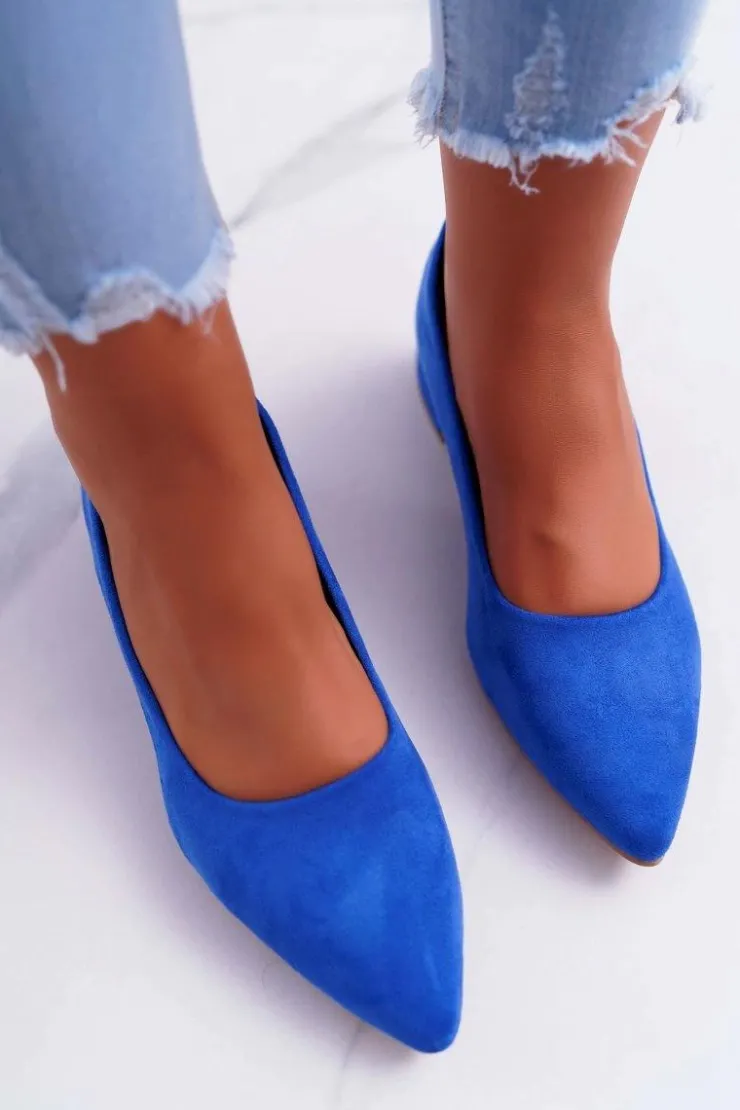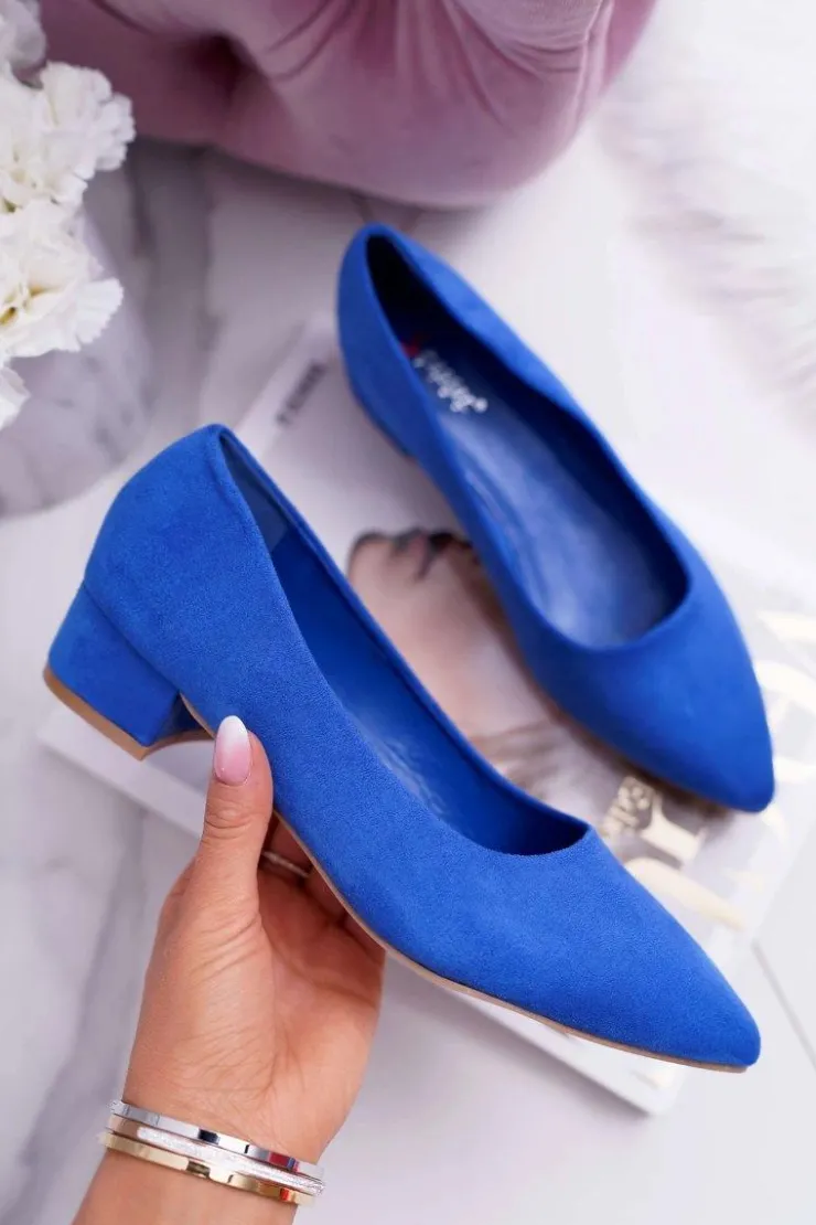 Czółenka na niskim obcasie wykonane z eko zamszu. Modny fason dostępny w wielu pięknych kolorach! Przy wyborze rozmiaru prosimy kierować się tabelą rozmiarów