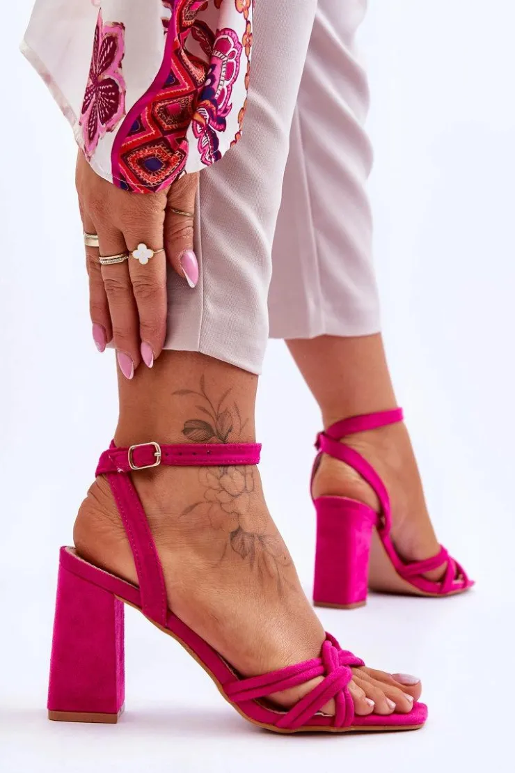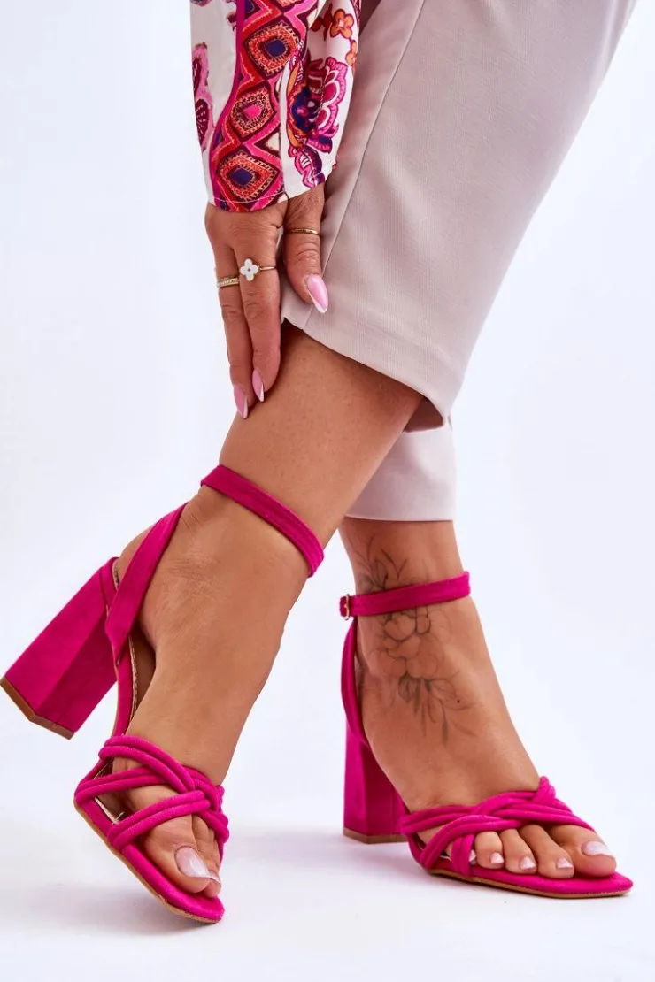 Damskie sandałki na obcasie w postaci słupka to MUST HAVE każdej kobiety! Wyjątkowy model z regulowanym paseczkiem zapinanym na sprzączkę wokół kostki. Sandałki zostały wykonane z zewnątrz z eko zamszu, natomiast wkładka z eko skóry. Model ten jest niezwykle stabilny i komfortowy w użytkowaniu. Przy wyborze rozmiaru prosimy sugerować się tabelą rozmiarów.