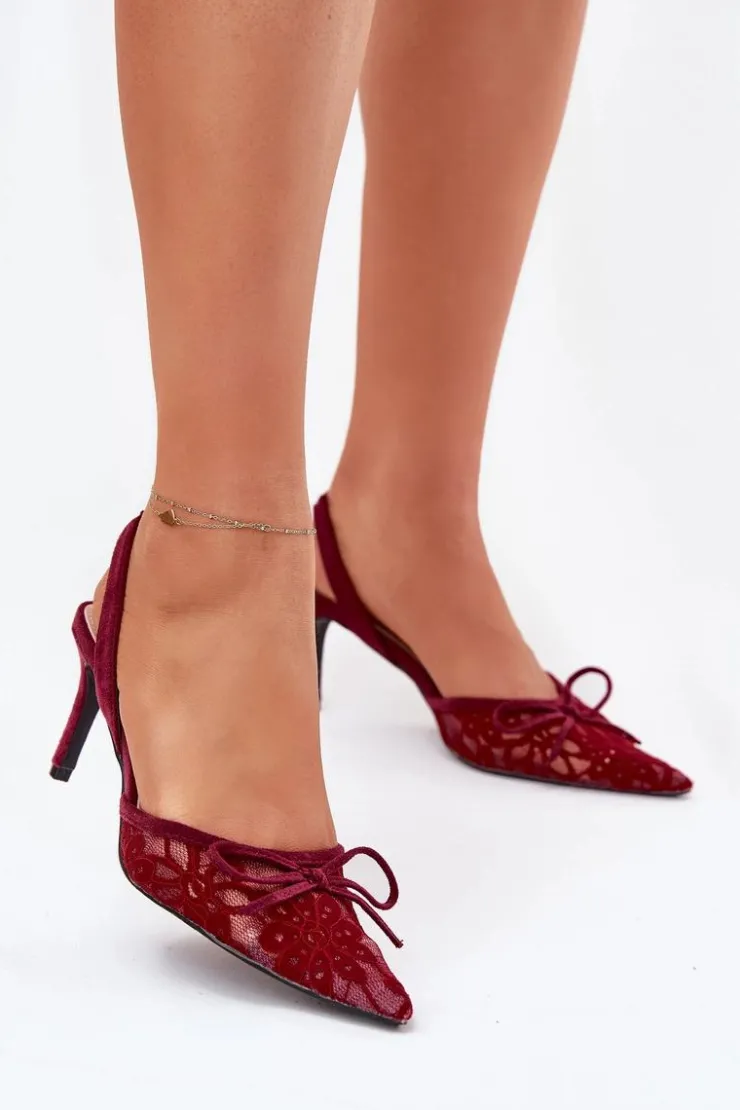 Koronkowe szpilki damskie to elegancka propozycja na wyjątkowe okazje. Model z odkrytą piętą i szpiczastymi noskami podkreśla smukłość sylwetki, a subtelna kokardka dodaje im delikatnego uroku. Idealne na wieczorne wyjścia czy formalne uroczystości, łączą stylowy wygląd z kobiecym wdziękiem. Przy wyborze rozmiaru prosimy sugerować się tabelą rozmiarów.