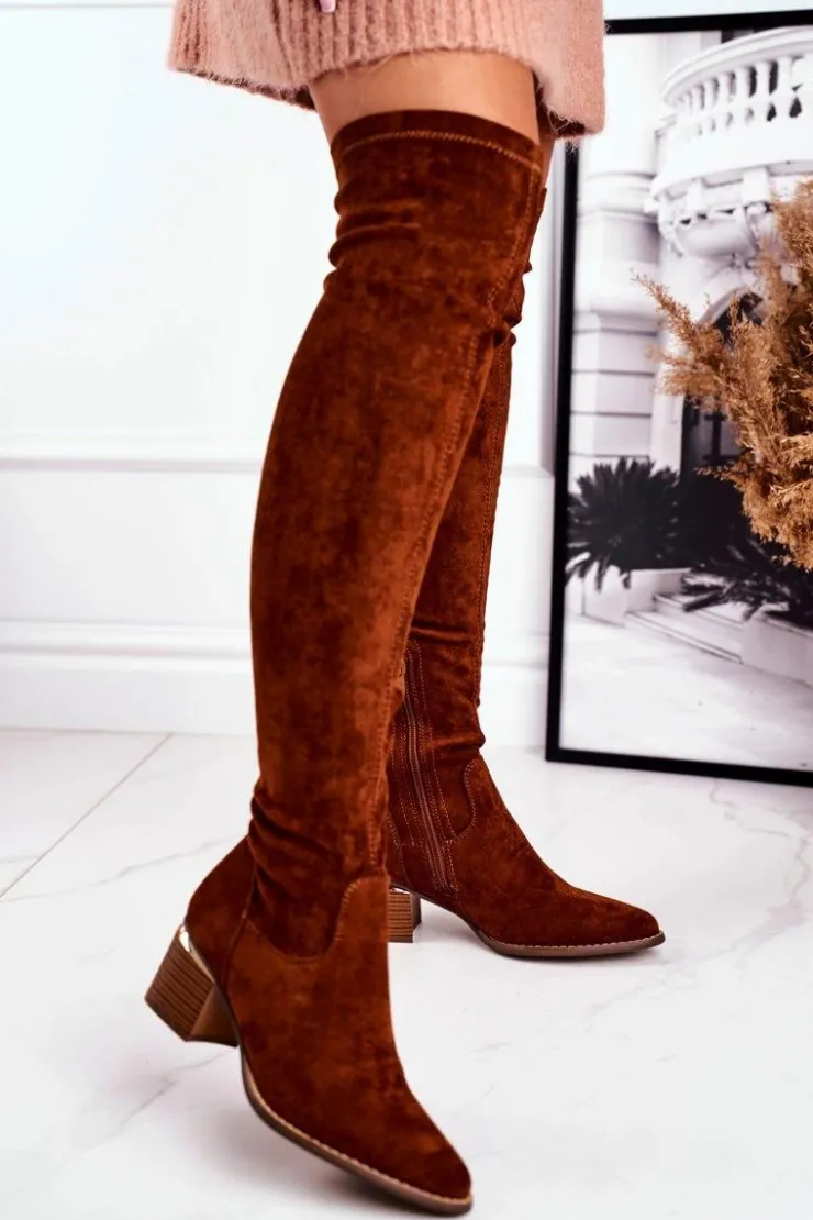 Damskie Boto Kozaki Damskie Do Kolana Eko-Zamsz Camel Indigo