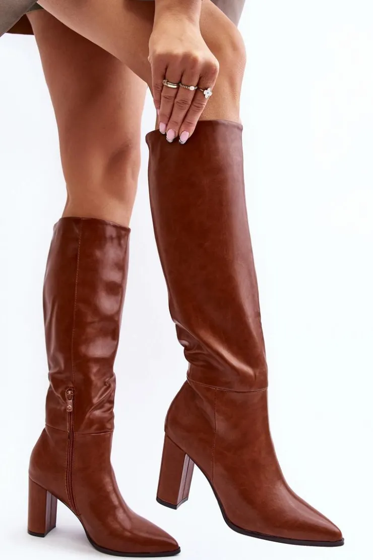 Damskie Boto Kozaki Damskie Do Kolana Na Słupku Camel Fiminna