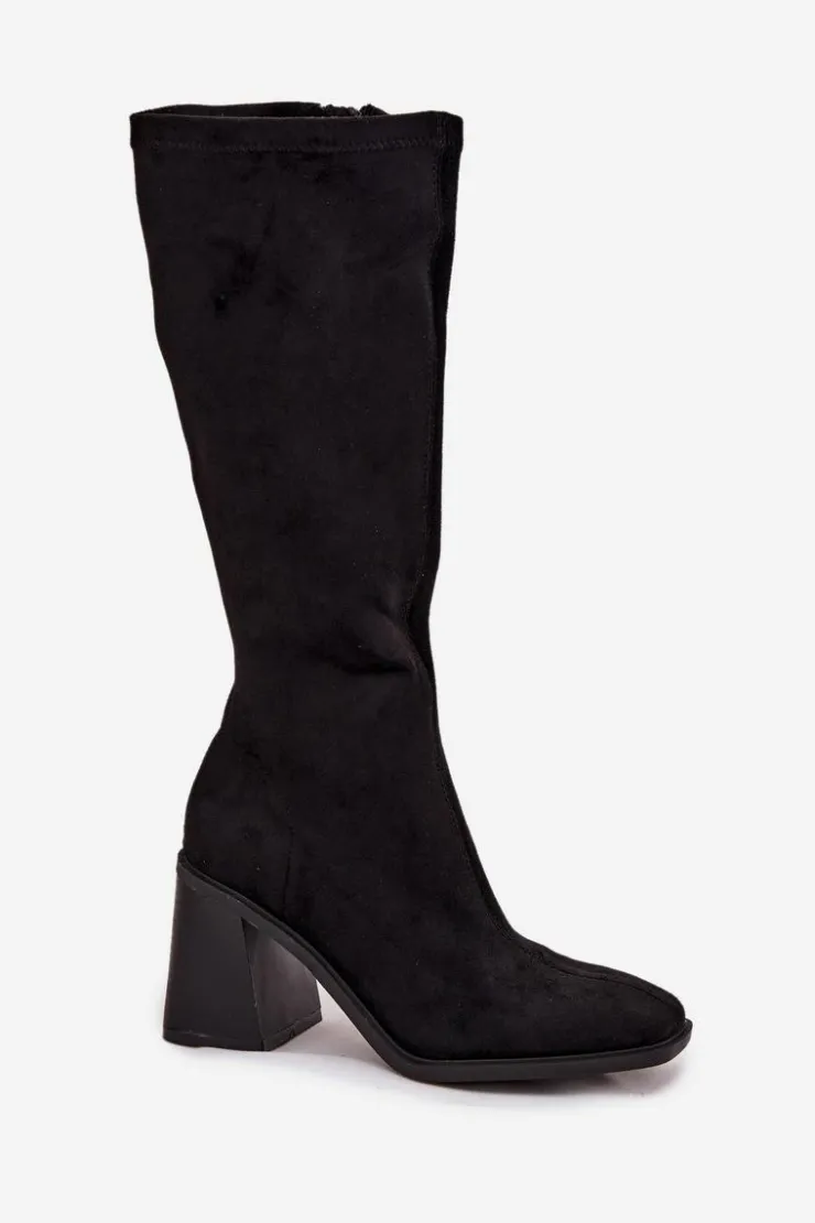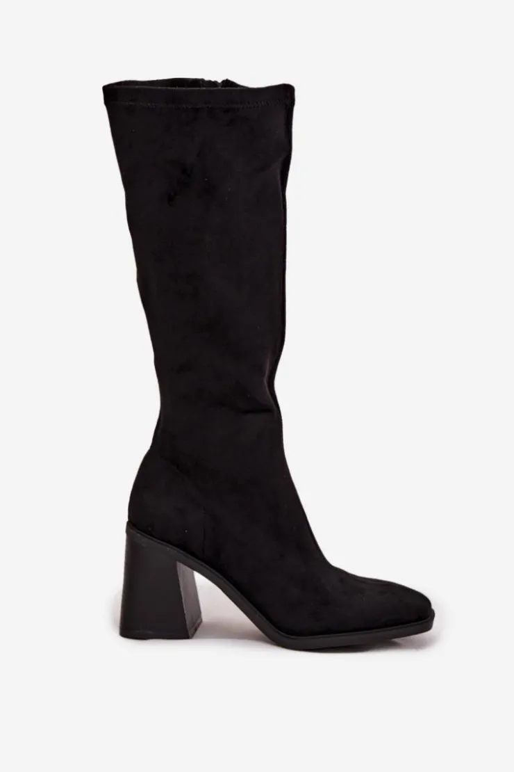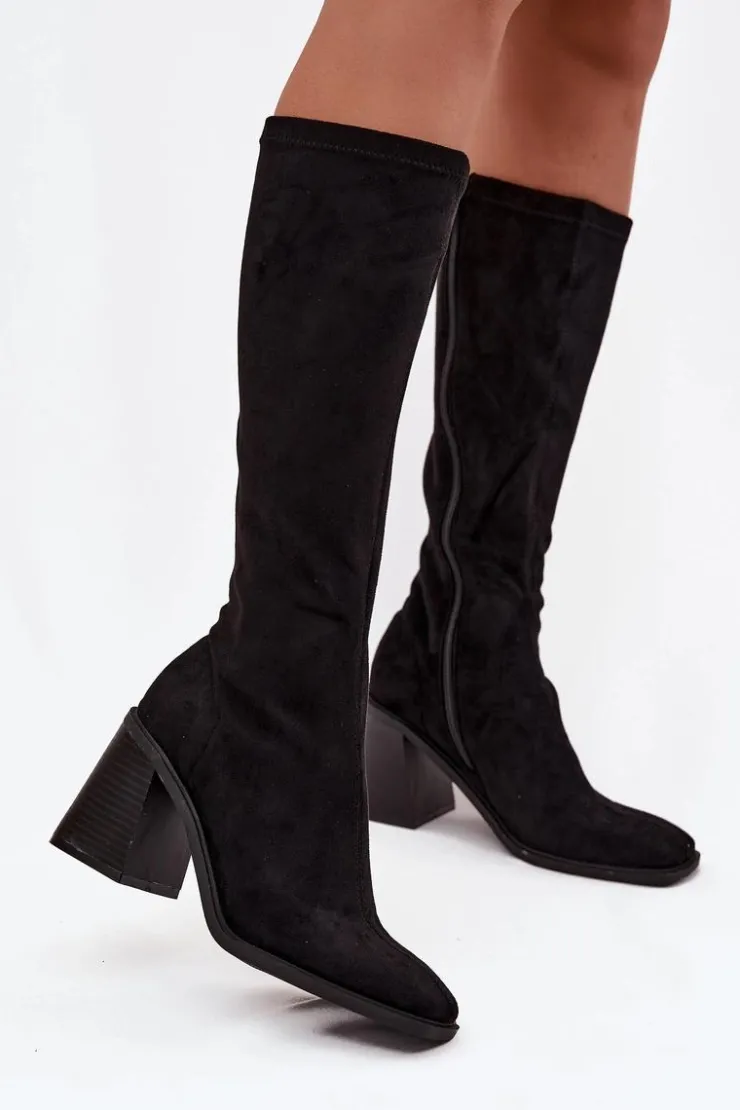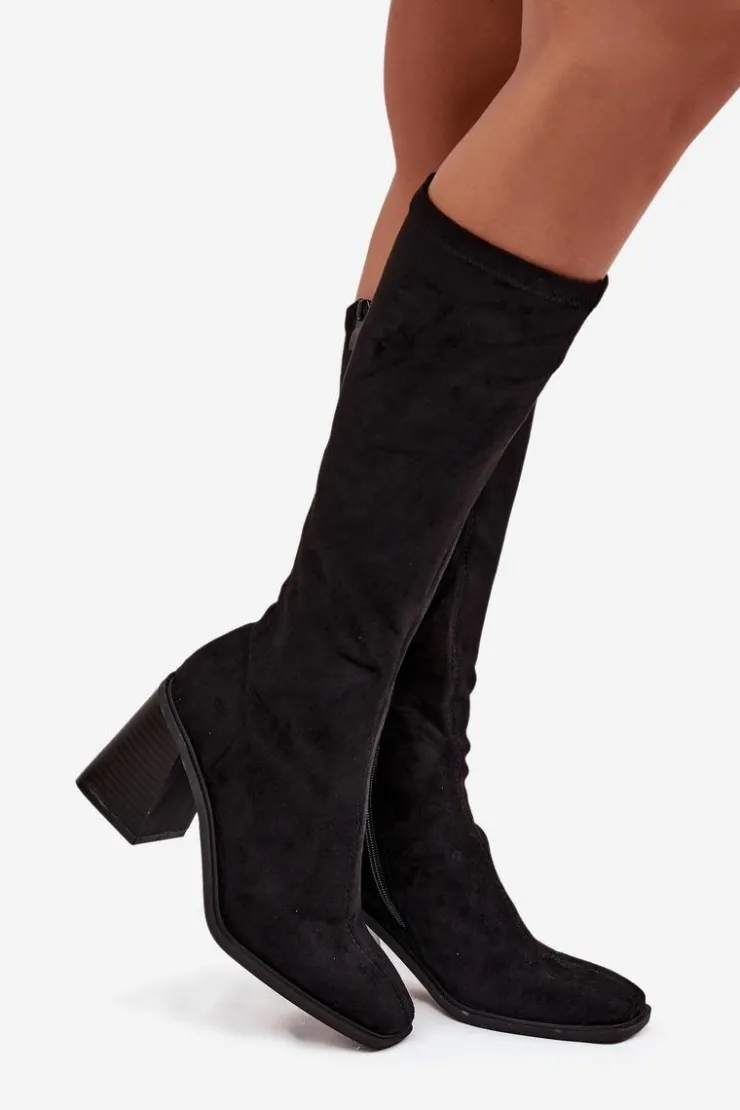 Damskie Boto Kozaki Damskie Na Masywnym Słupku Eko Zamszowe Czarne Traven