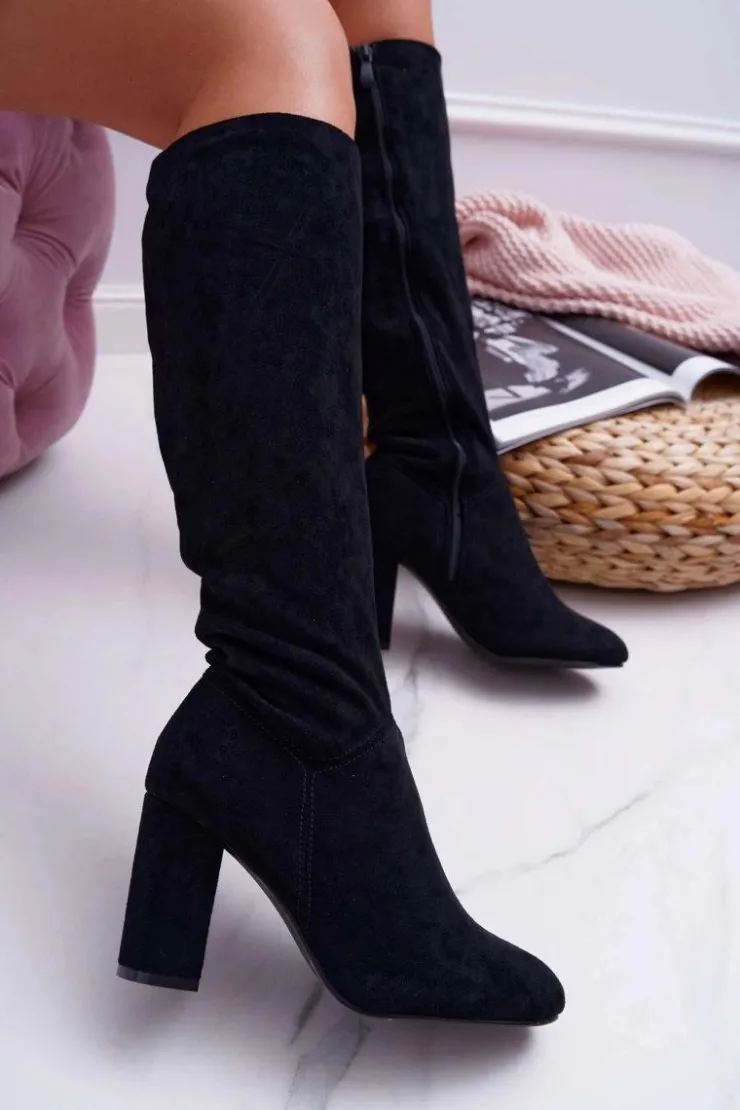 Damskie Boto Kozaki Damskie Na Słupku Do Kolana Czarne Mercure