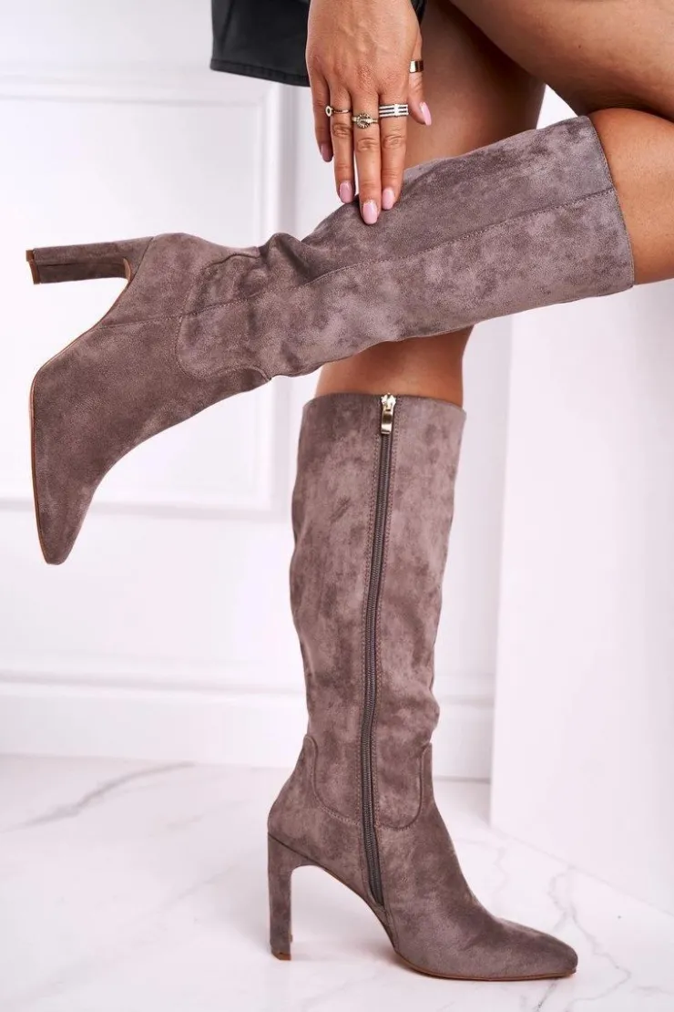 Damskie Boto Kozaki Damskie Na Słupku Do Kolana Szare Truly Love