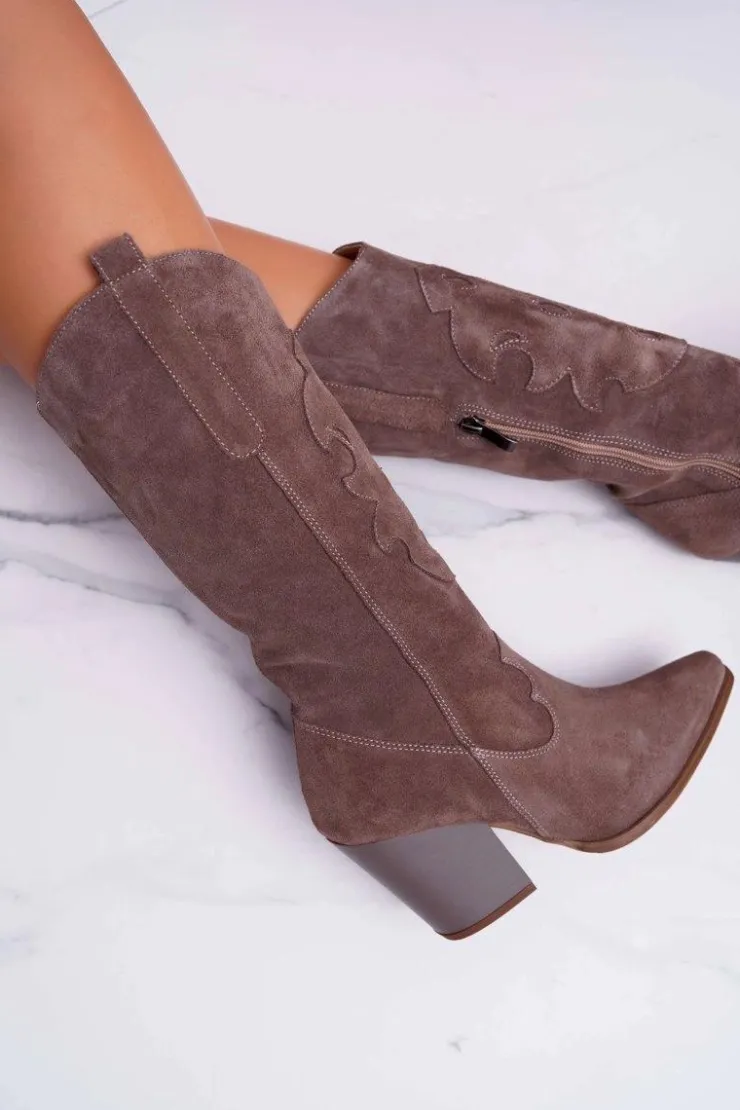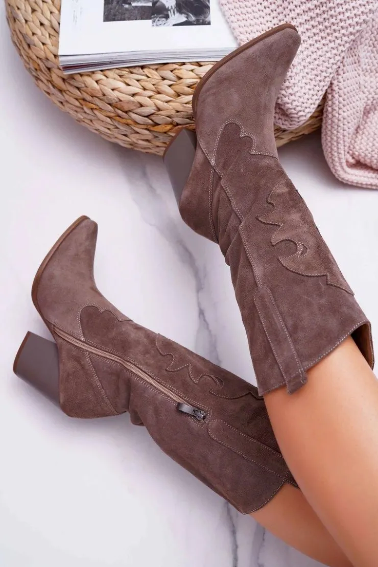 Damskie Boto Kozaki Damskie Na Słupku Kowbojki Cappuccino Brunt