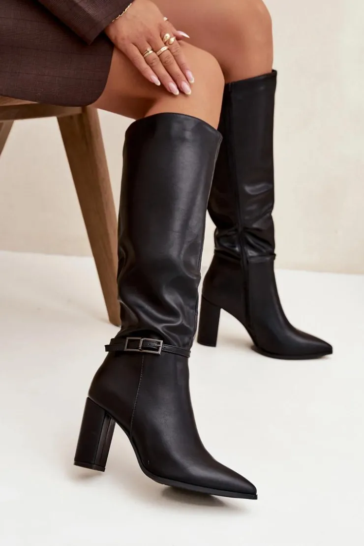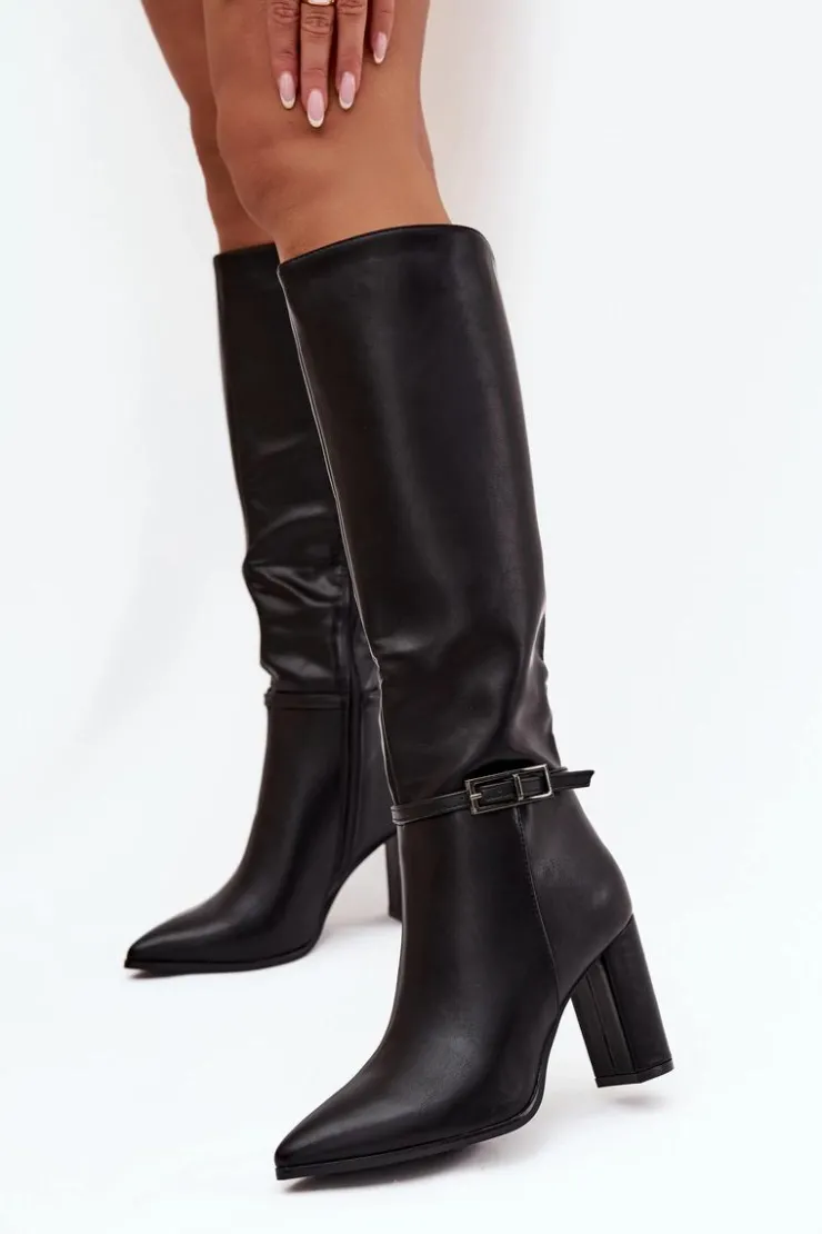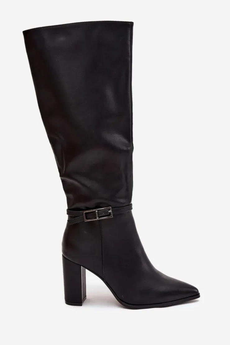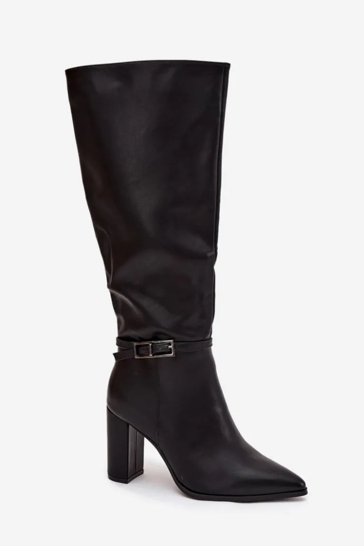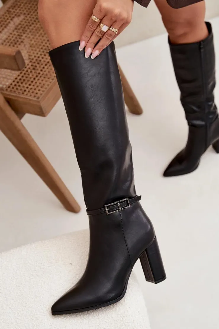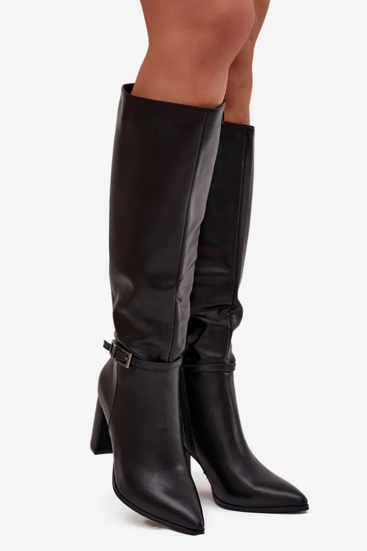 Kozaki damskie wykonane z eko skóry to elegancka propozycja na chłodniejsze dni. Osadzone na stabilnym obcasie typu słupek pięknie wysmuklają sylwetkę, a szpiczaste noski podkreślają kobiecy charakter obuwia. Wnętrze ocieplane kocem obuwniczym gwarantuje komfort i ciepło, a praktyczny zamek ułatwia zakładanie. Stylowym akcentem jest cienki paseczek z klamrą umieszczony na dole cholewki, który dodaje całości subtelnego wykończenia. To kozaki, które świetnie sprawdzą się zarówno w codziennych, jak i eleganckich stylizacjach. Przy wyborze rozmiaru prosimy sugerować się tabelą rozmiarów.