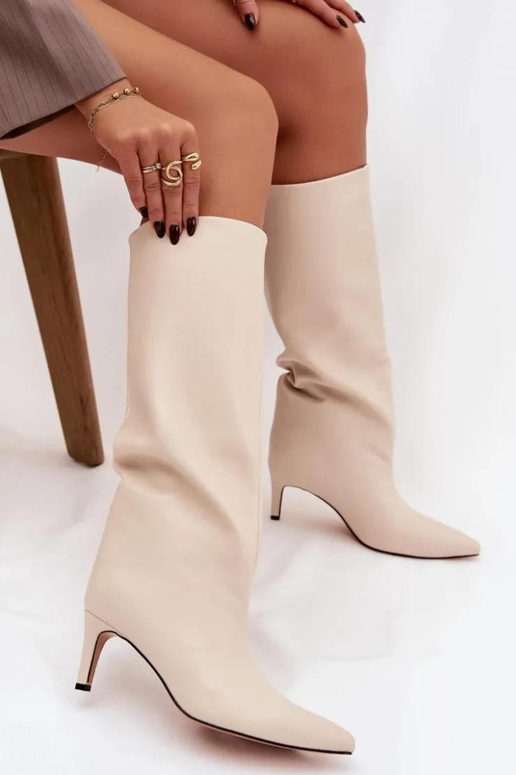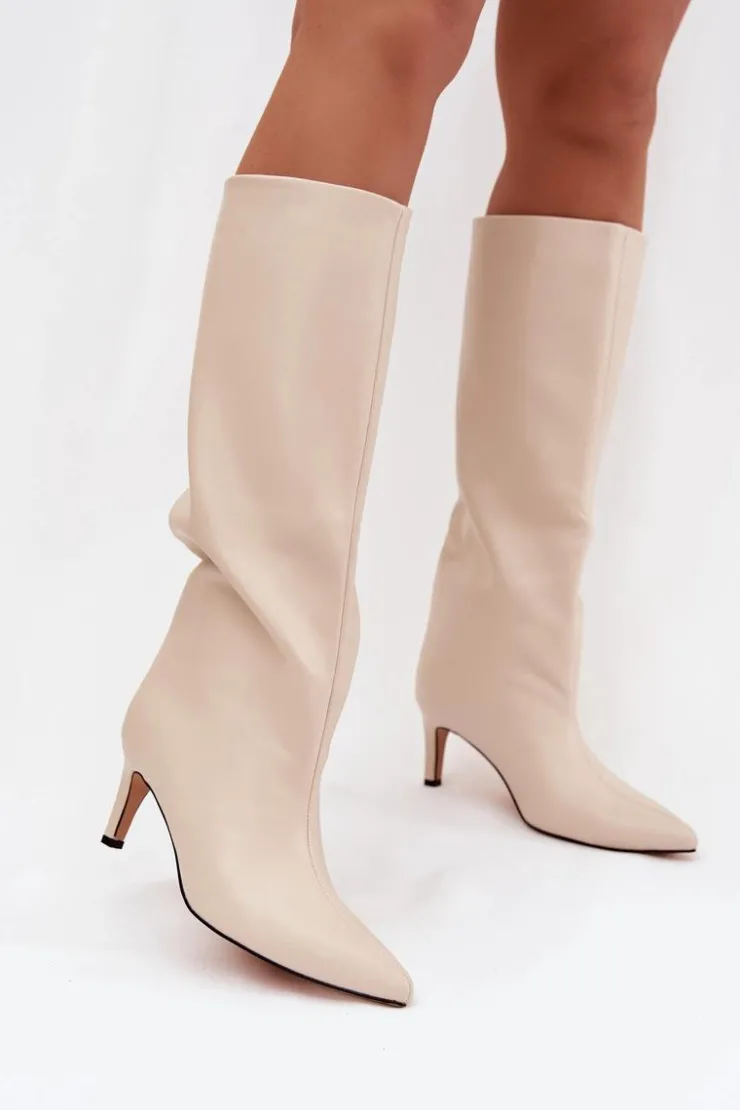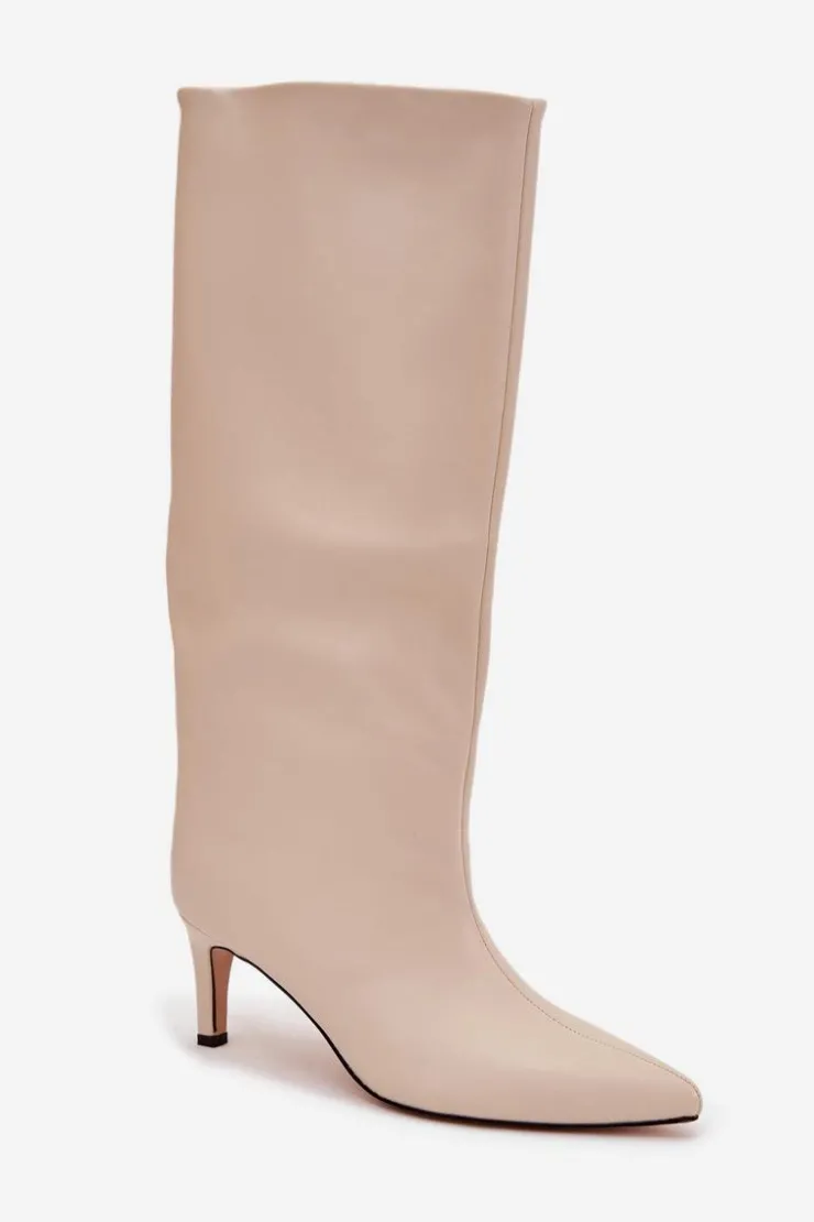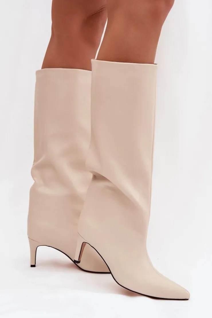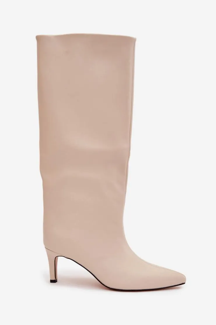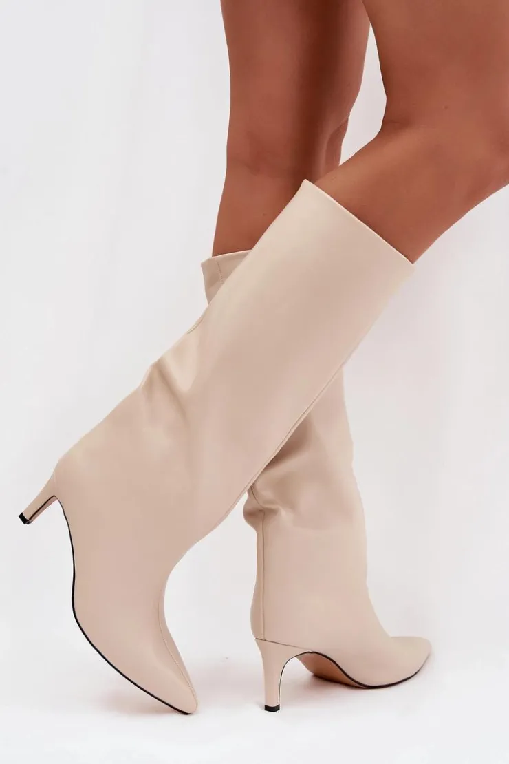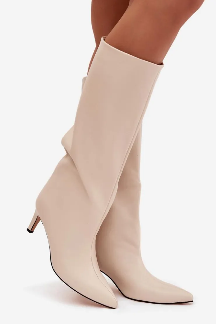 Damskie Boto Kozaki Damskie Wsuwane Ocieplane Na Szpilce Jasnobeżowe Olivienne