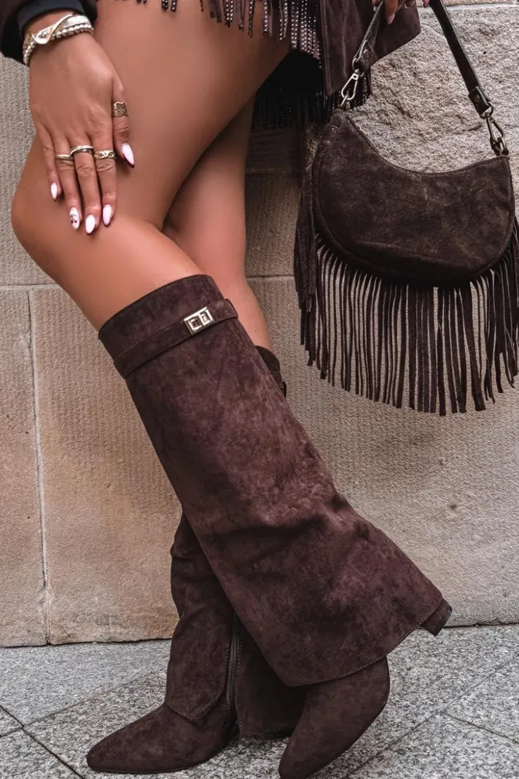 Postaw na wygodę, elegancję i ekologiczną jakość z kozakami Eko Zamszowymi z wywiniętą cholewką na słupku!