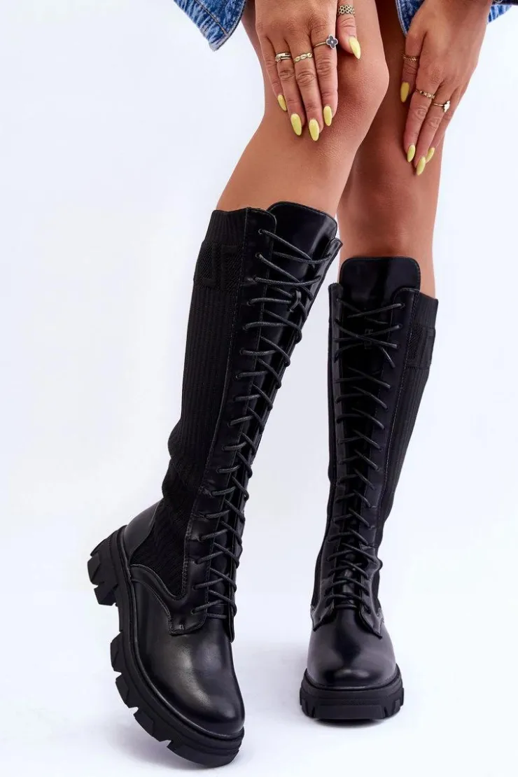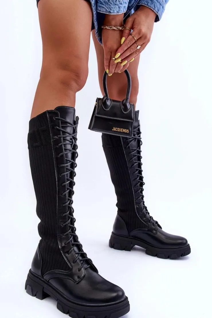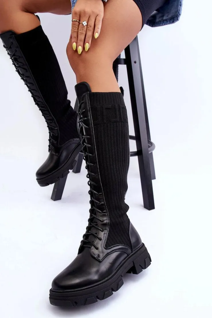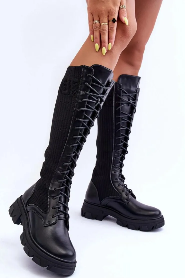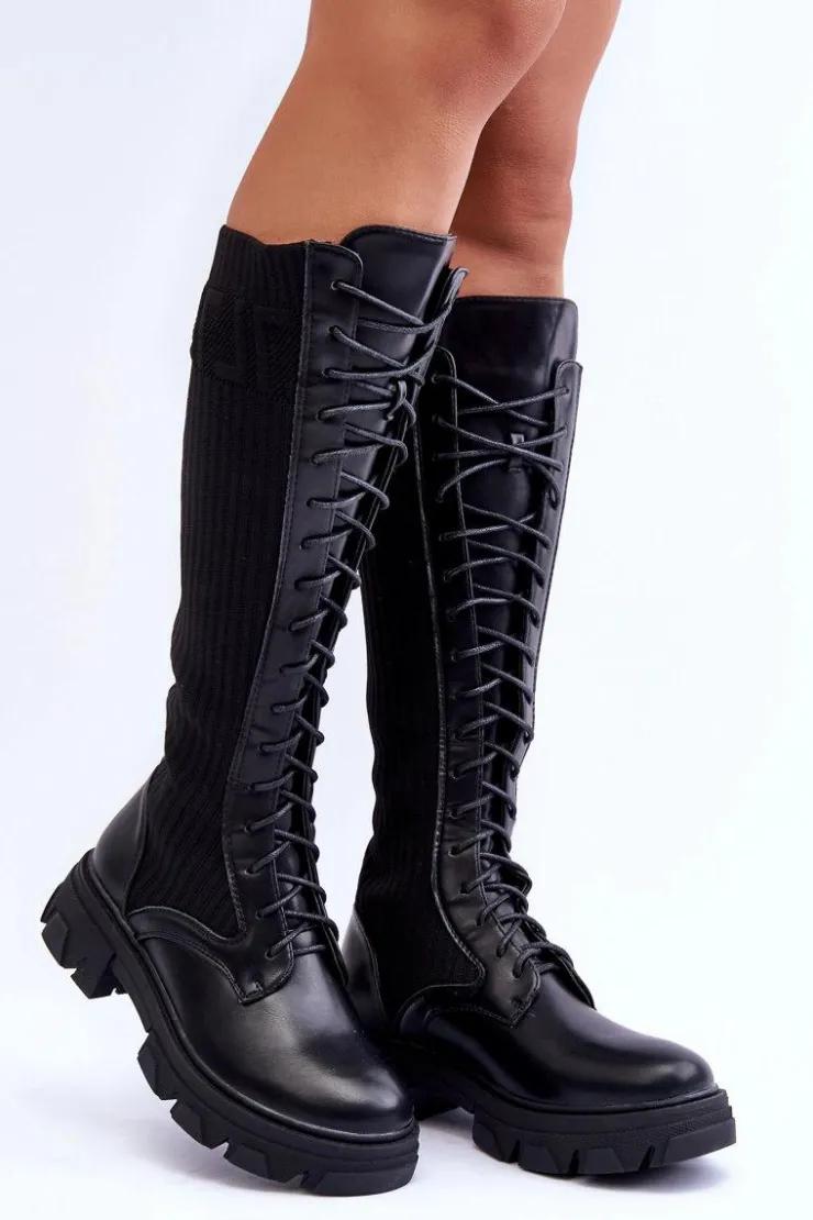 Damskie Boto Kozaki Na Płaskim Obcasie Ze Skarpetą Czarne Itona
