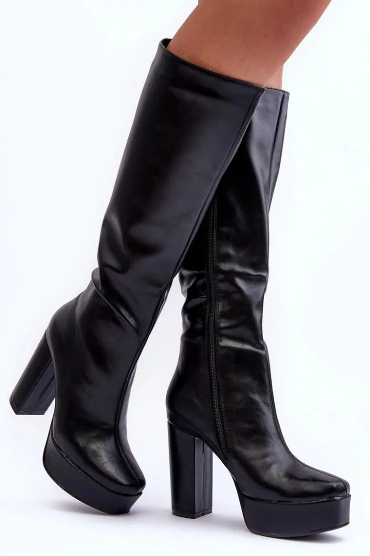 Modne kozaki damskie zostały wykonane z eko skóry. Osadzone na grubej platformie oraz obcasie w postaci masywnego słupka. Model zapinany na suwak. Cholewka przed kolano, noski kwadratowe. Świetny fason, który wyróżni Cię z tłumu. Nie posiadają ocieplenia. Koniecznie powinnaś je mieć! Przy wyborze rozmiaru prosimy sugerować się tabelą rozmiarów.