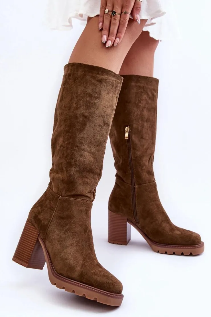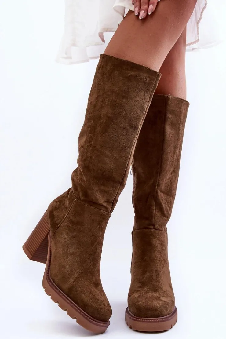 Kozaki damskie wykonane z eko zamszu. Zapinane na suwak po wewnętrznej stronie buta. Osadzone na masywnym obcasie. Model z cholewką przed kolano. Zapiętek usztywniany. Wnętrze ocieplone kocem obuwniczym. Wykorzystasz je w wielu stylizacjach! Koniecznie muszą być Twoje! Przy wyborze rozmiaru prosimy sugerować się tabelą rozmiarów.