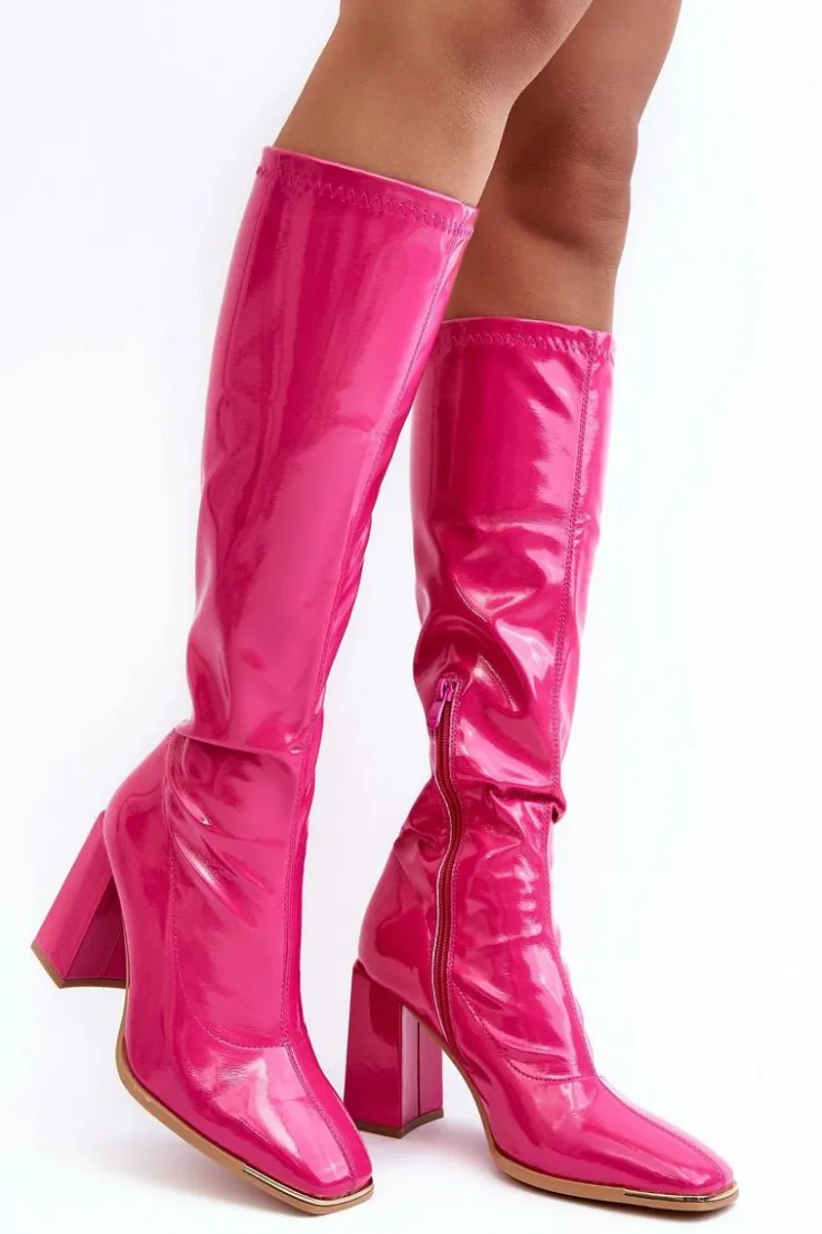 Damskie Boto Lakierowane Kozaki Na Słupku Przed Kolano Fuksja Mlokva