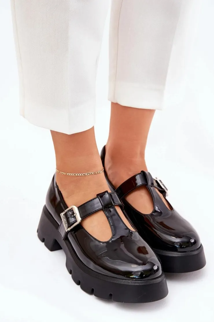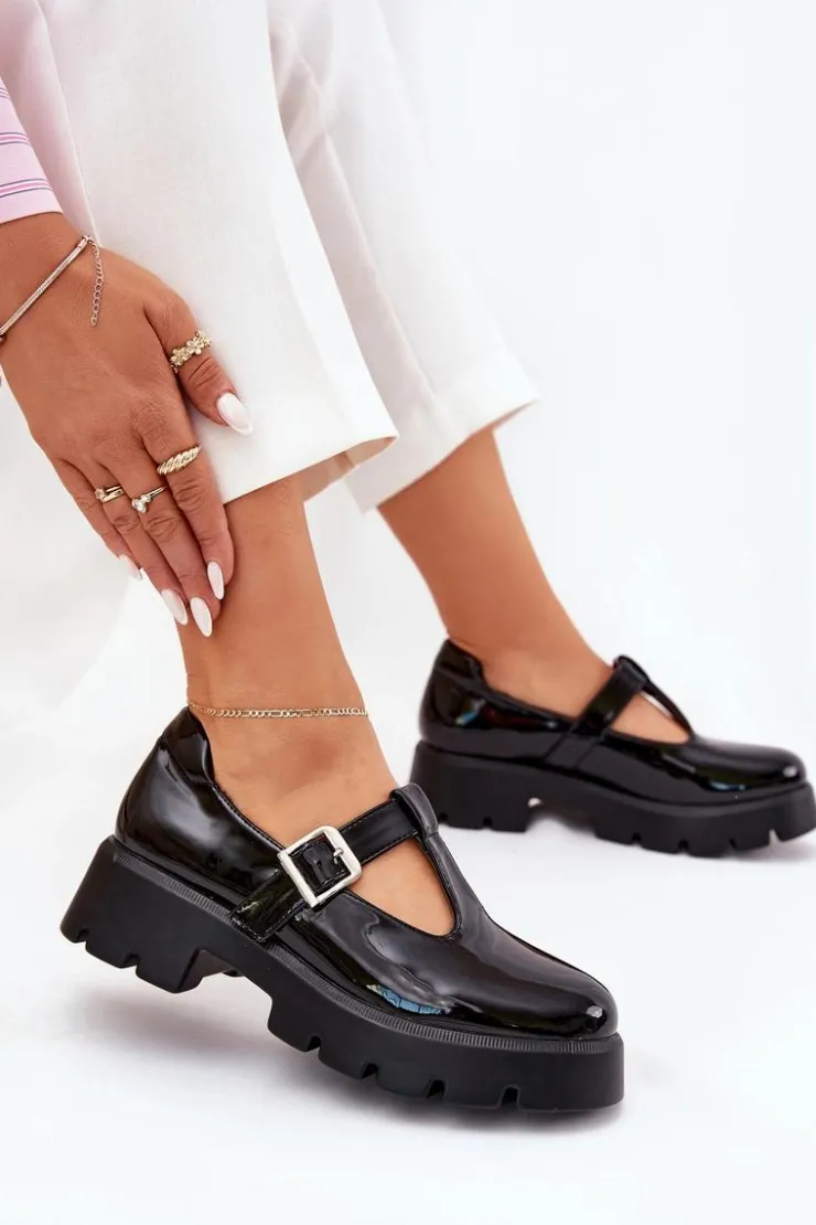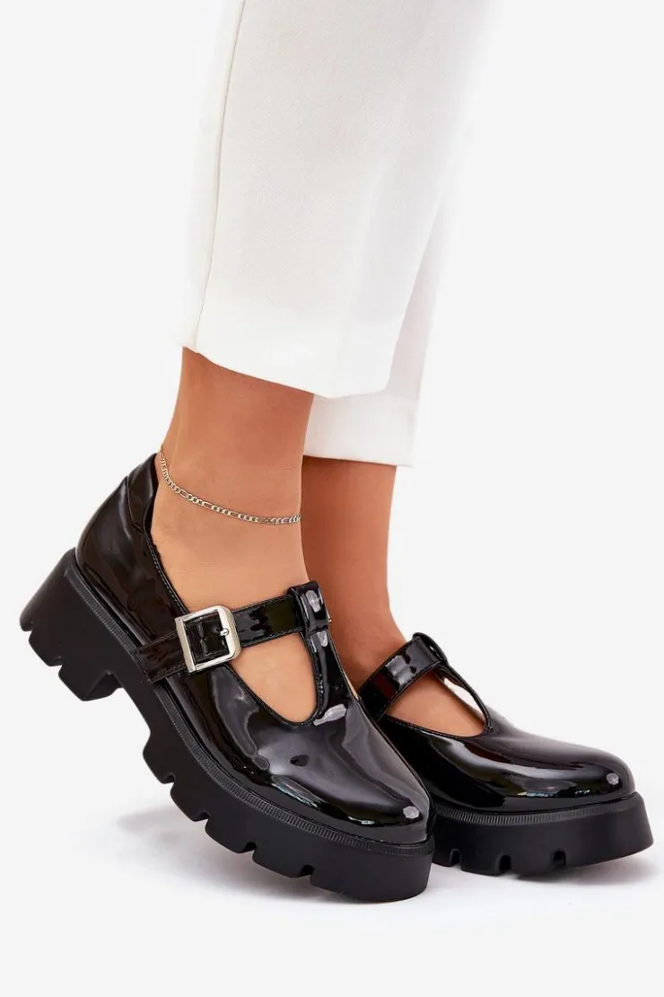 Stylowe półbuty damskie wykonane z eko skóry to doskonałe połączenie klasyki i nowoczesnego wyglądu. Osadzone na płaskim obcasie i platformie, zapewniają komfort oraz stabilność na każdym kroku. Paseczek z klamrą na śródstopiu zwiększa dopasowanie i podtrzymuje stopę. Idealne na co dzień, do casualowych i bardziej eleganckich stylizacji! Przy wyborze rozmiaru prosimy sugerować się tabelą rozmiarów.