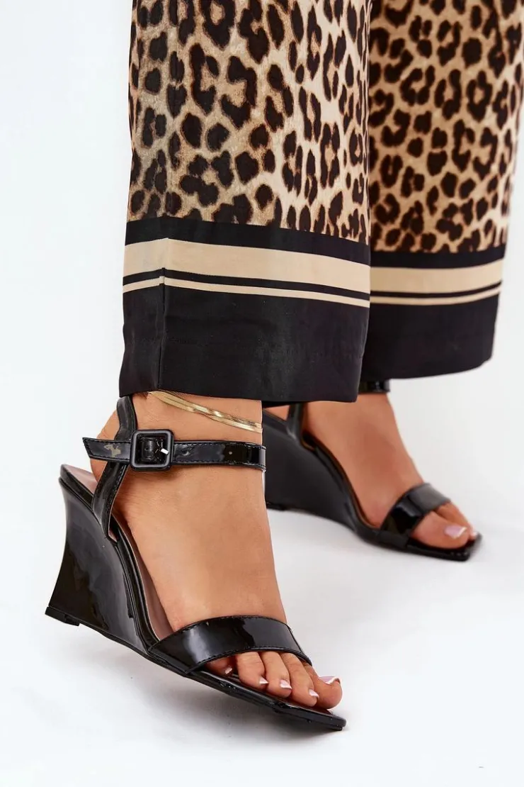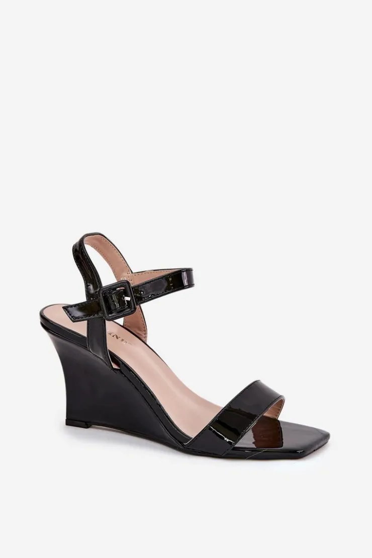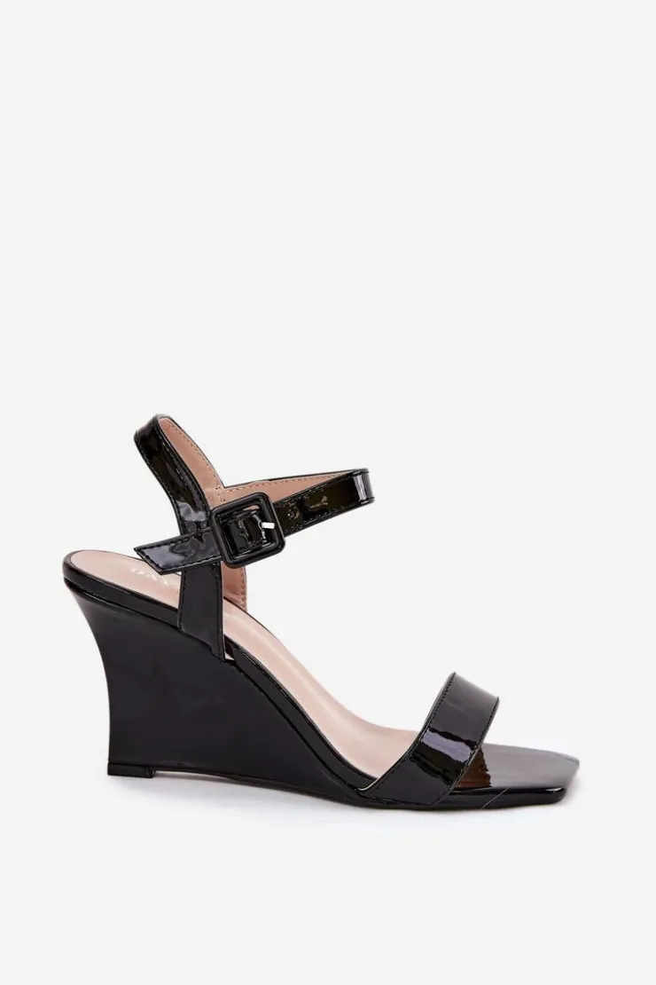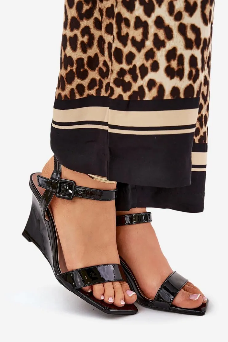 Damskie Boto Lakierowane Sandały Damskie Na Koturnie Czarne Vliraya