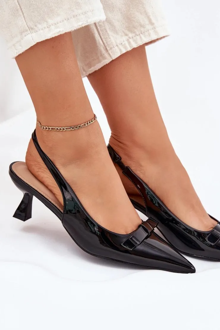 Sandały damskie z eko skóry na niskiej szpilce to elegancka propozycja na specjalne okazje. Szpiczaste noski dodają im smukłości, a subtelna kokardka z przodu nadaje im kobiecego uroku. Stylowy i elegancki wygląd sprawia, że te sandały będą doskonałym wyborem na wieczorne wyjścia, wesela czy inne uroczystości. Przy wyborze rozmiaru prosimy sugerować się tabelą rozmiarów.