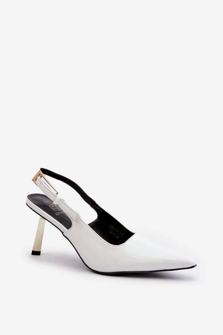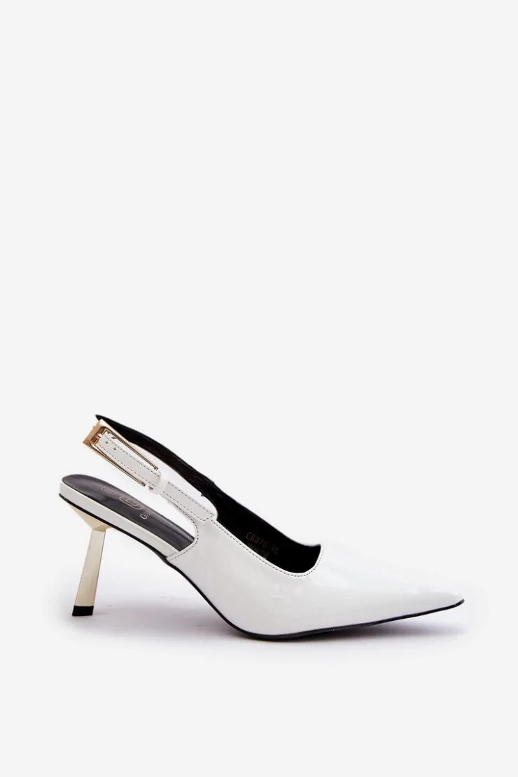 Eleganckie szpilki z lakierowanej eko skóry to wyjątkowy wybór dla miłośniczek stylowych akcentów. Model osadzony na ozdobnej, złotej szpilce dodaje szyku każdej stylizacji. Szpiczaste noski podkreślają elegancję butów, a regulowany pasek ze sprzączką zapewnia wygodne i pewne dopasowanie. Idealne na wyjątkowe okazje, doskonale dopełnią wieczorowe i koktajlowe kreacje. Przy wyborze rozmiaru prosimy sugerować się tabelą rozmiarów.