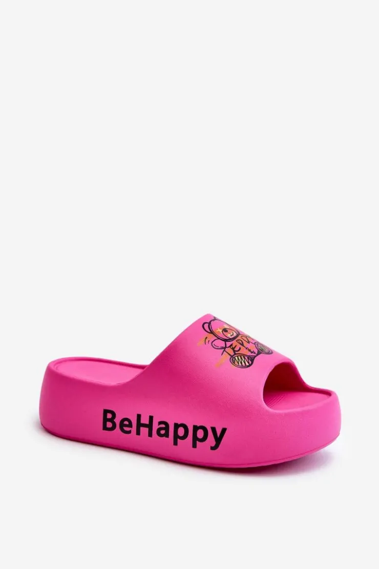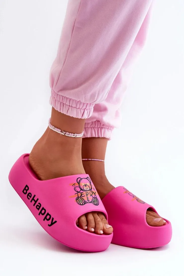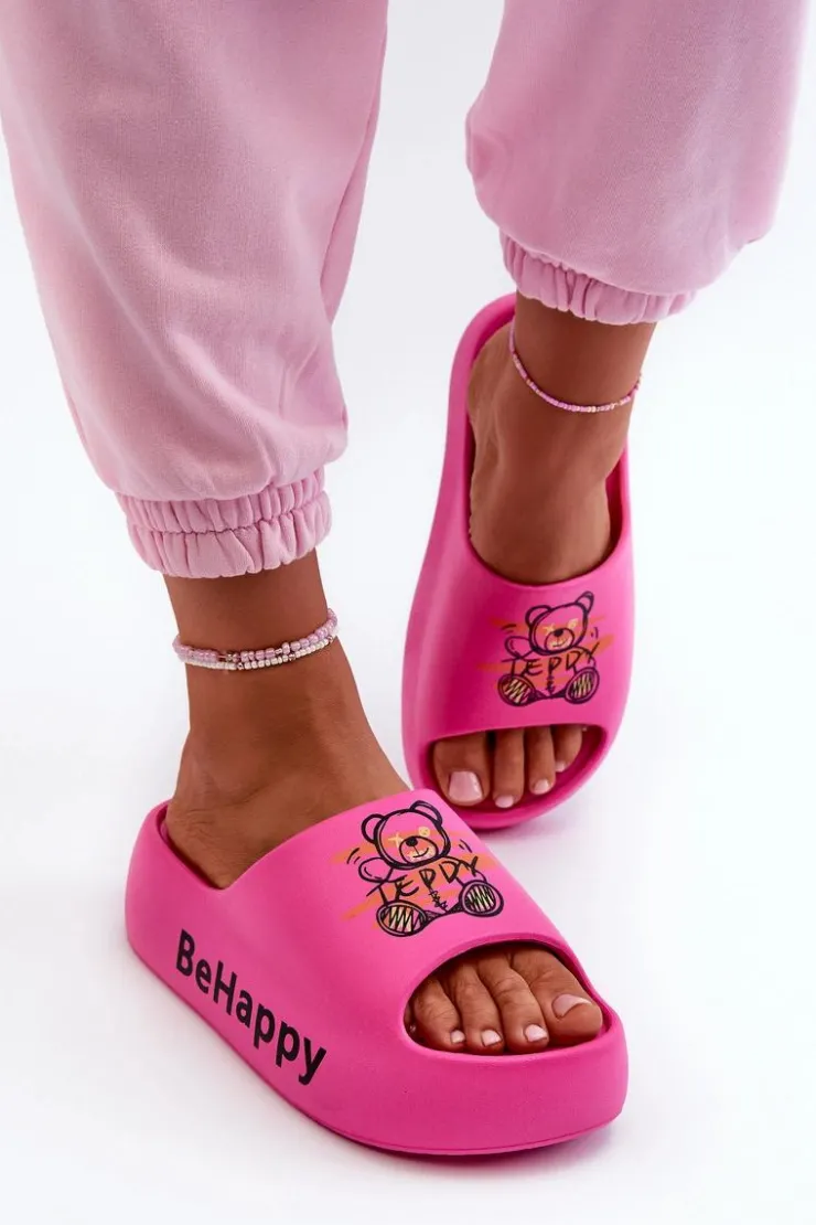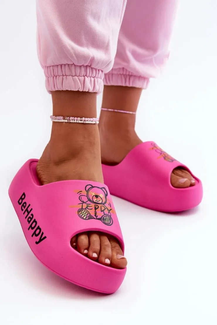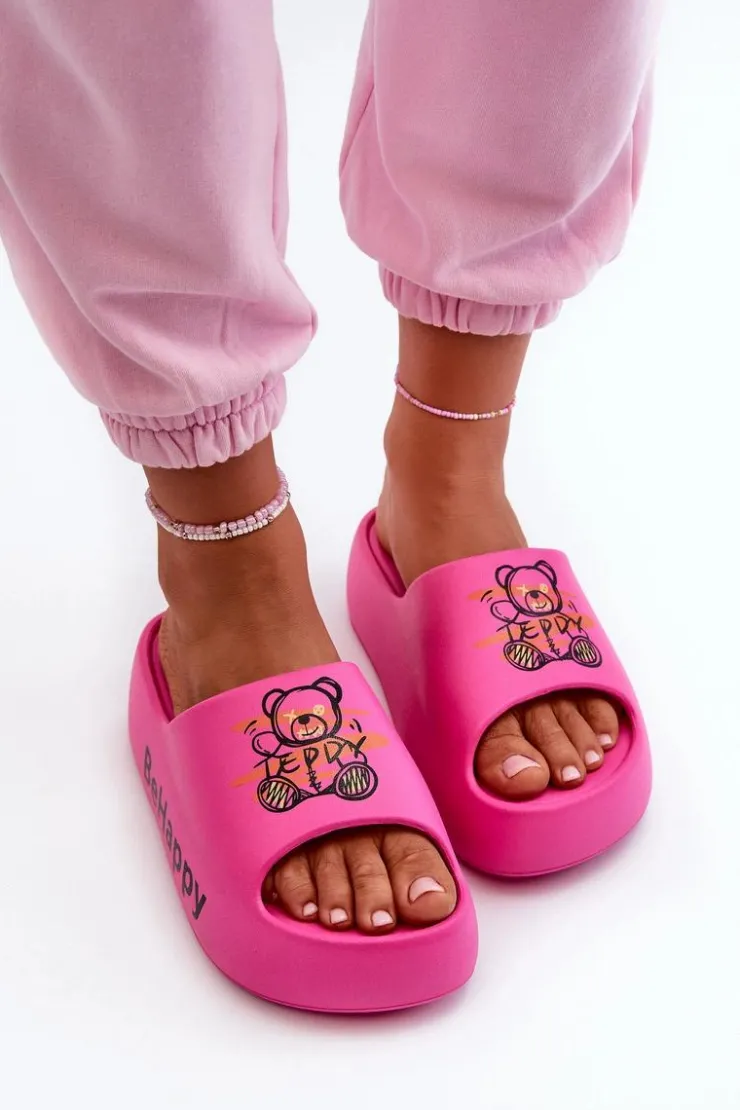 Damskie Boto Lekkie Klapki Damskie Na Grubej Podeszwie Z Misiem Piankowe Fuksja Serefina