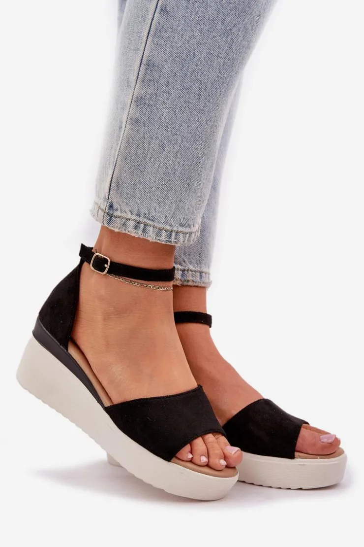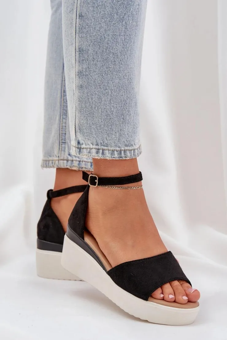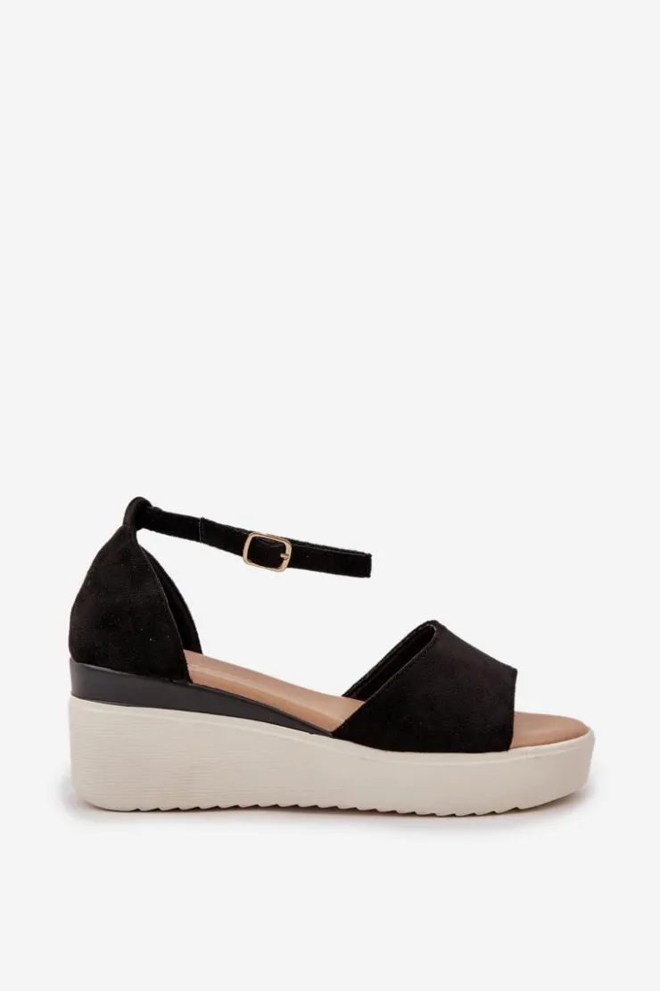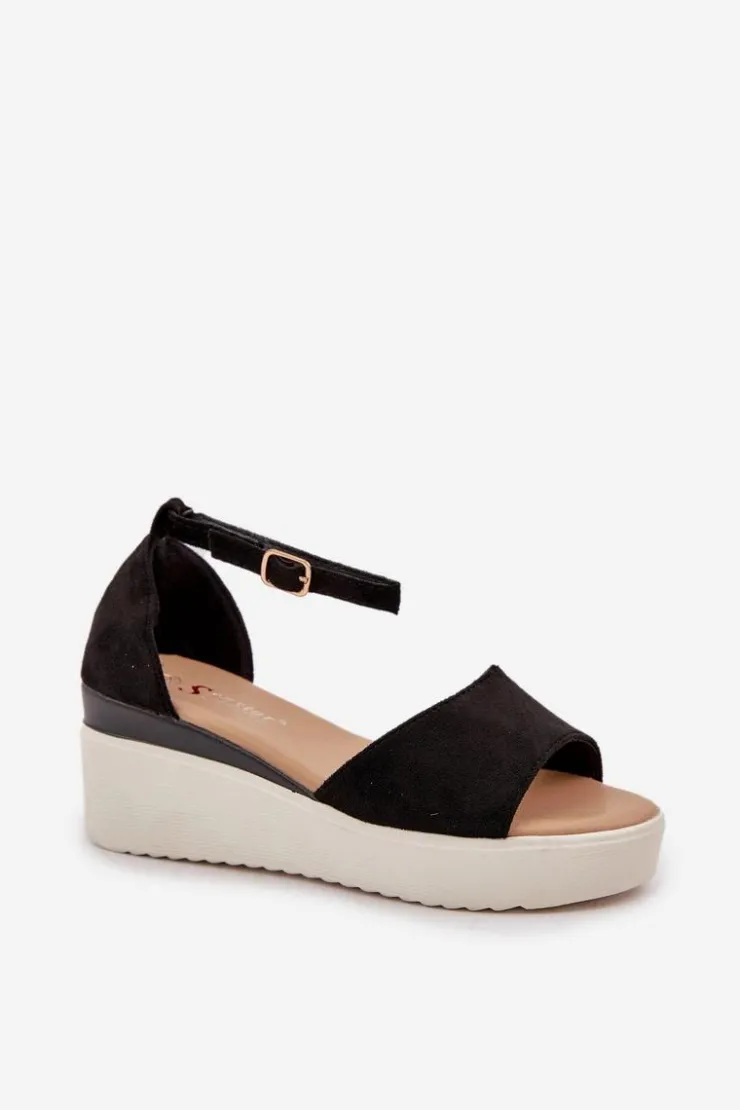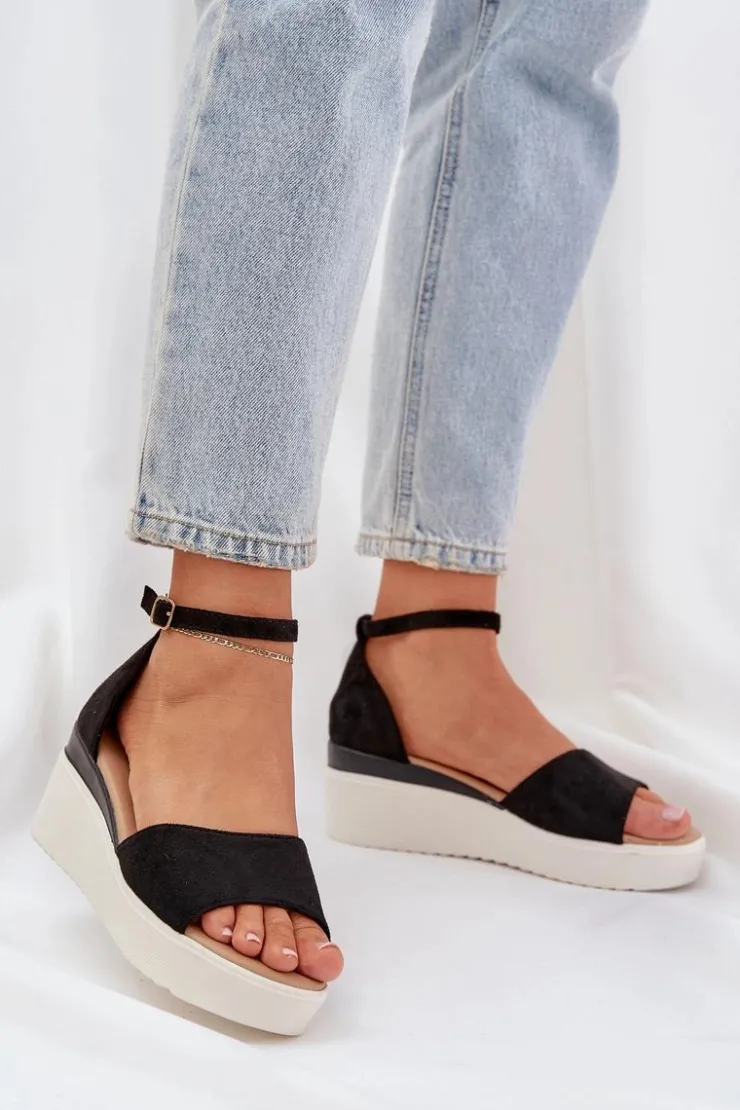Damskie Boto Lekkie Sandały Na Platformie I Delikatnym Koturnie Czarne Gillifia