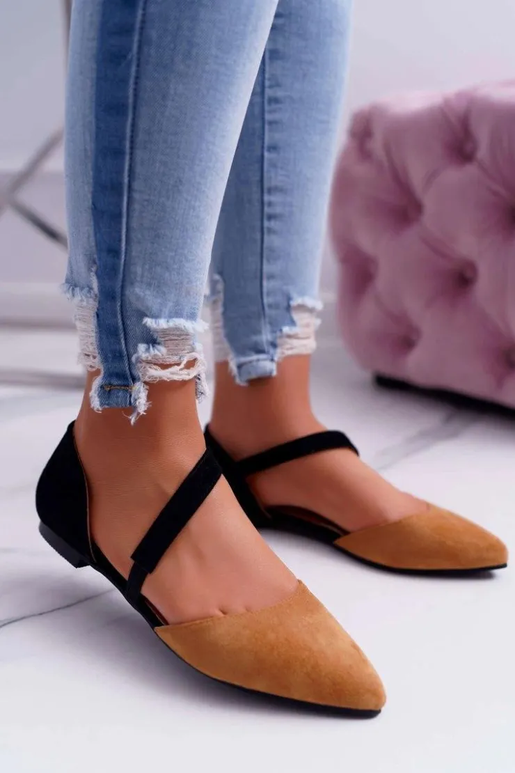 Damskie Boto Lu Boo Baleriny W Szpic Zamsz Camel Carana