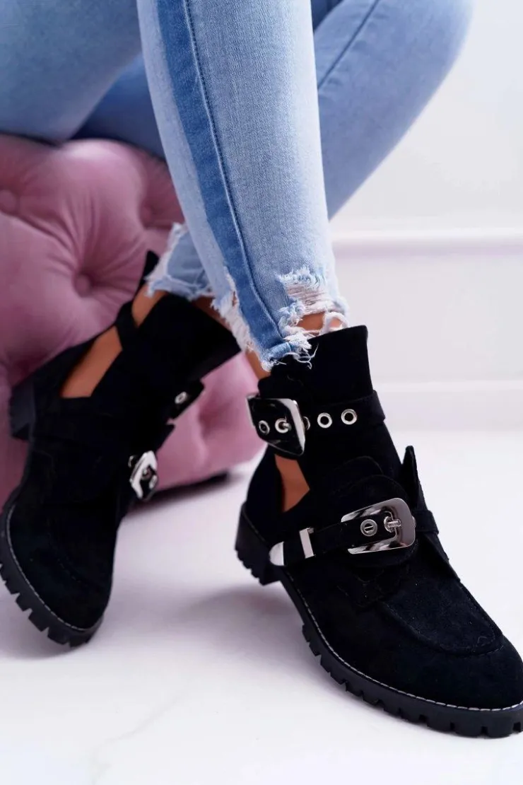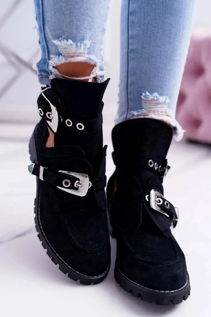 Damskie Boto Lu Boo Czarne Zamszowe Botki Z Wycięciami Rock Girl