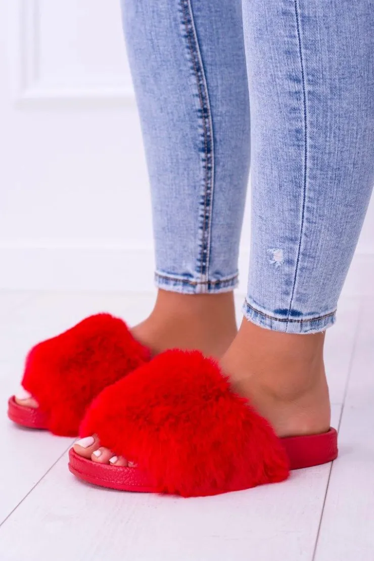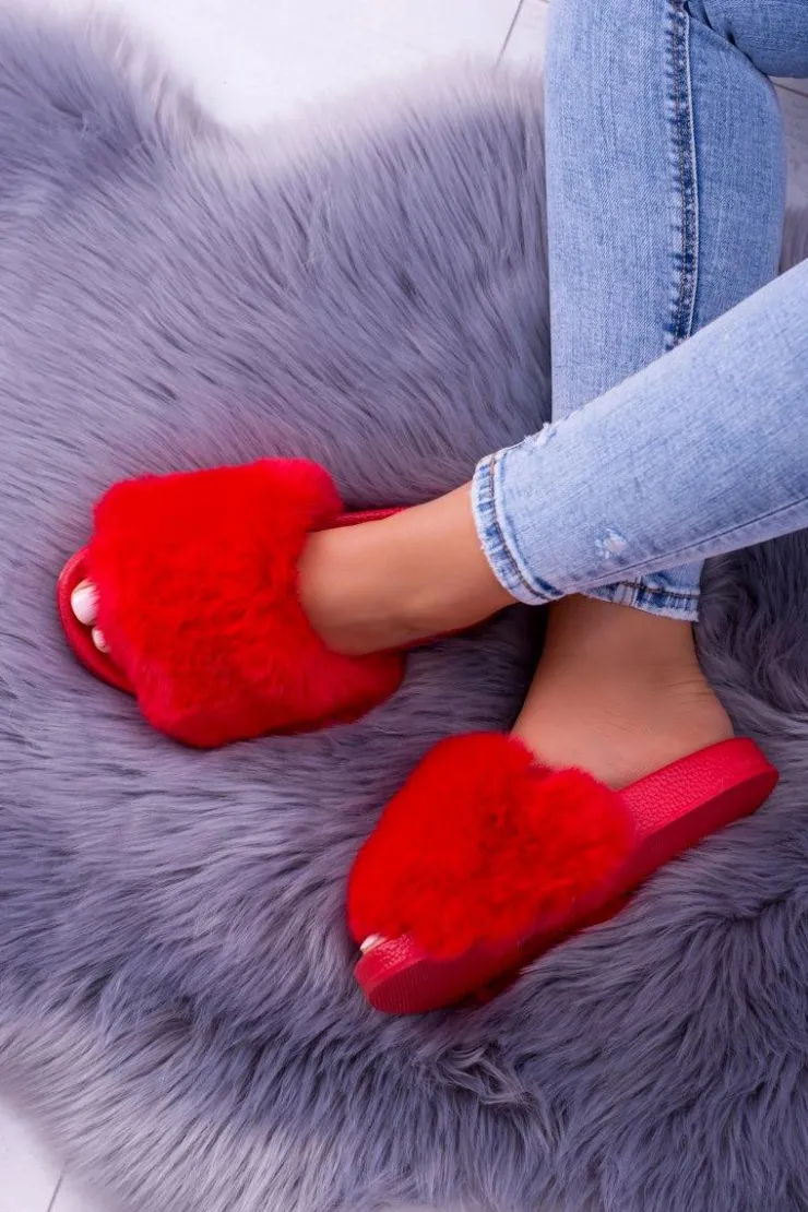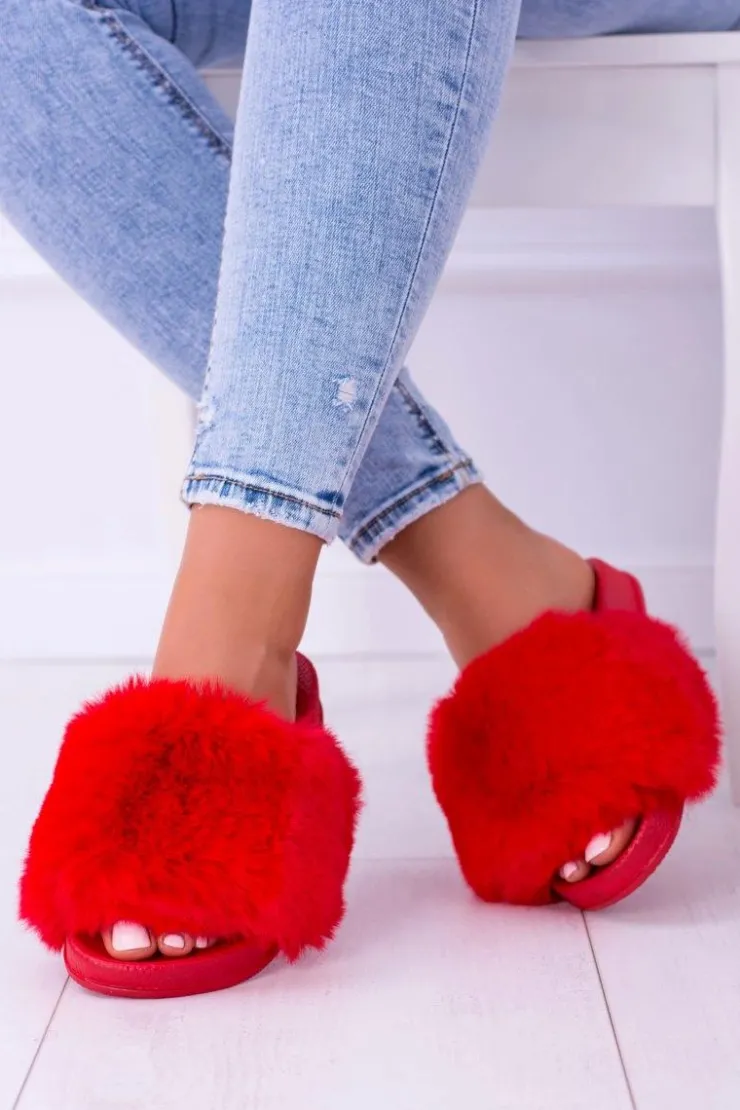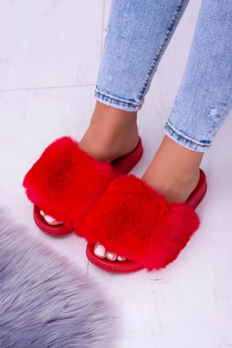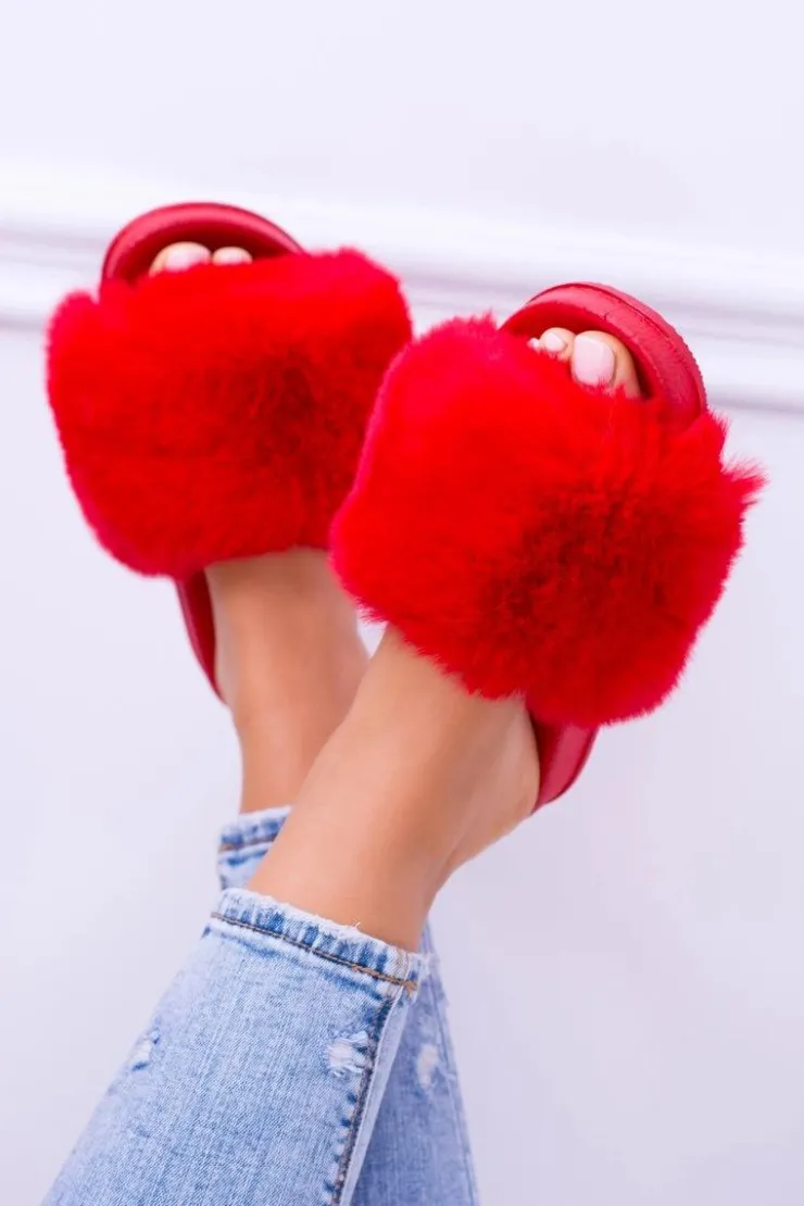 Damskie Boto Lu Boo Czerwone Damskie Klapki Z Futerkiem FUR XXL