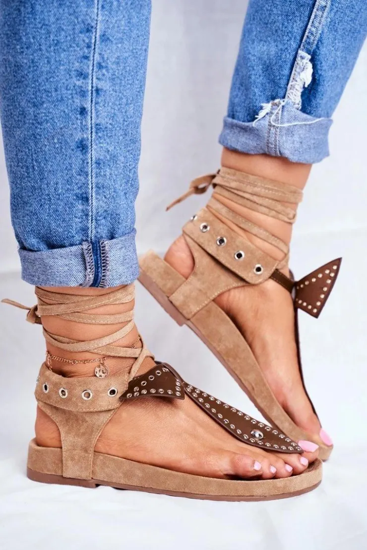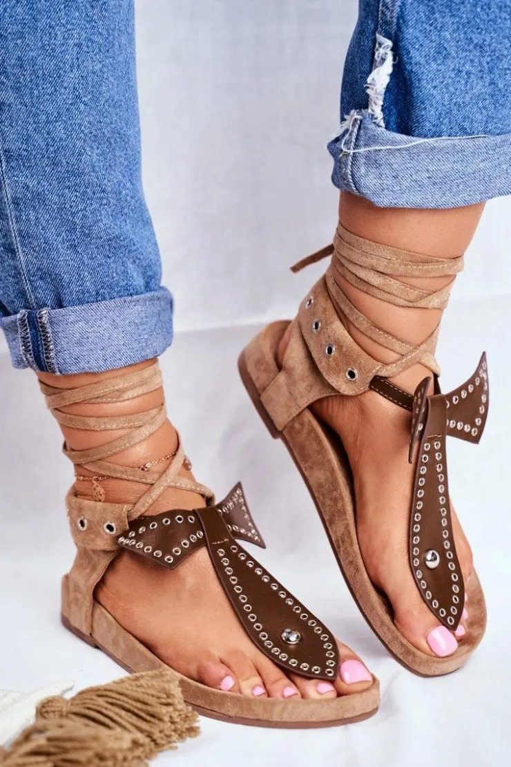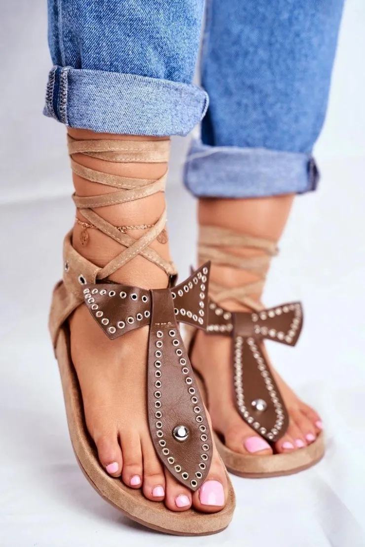 Damskie Boto Lu Boo Damskie Brązowe Wiązane Sandały Japonki Mara