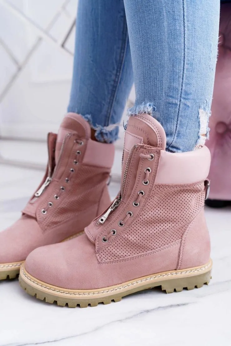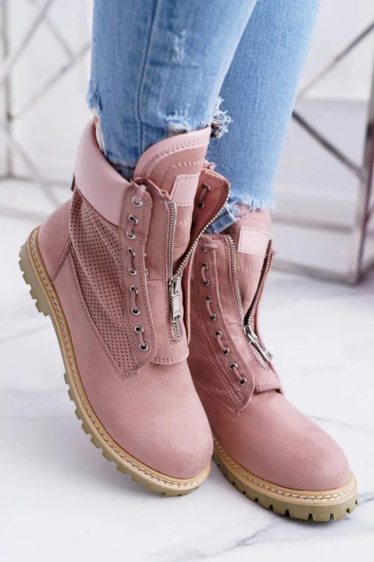 Damskie Boto Lu Boo Damskie Zamszowe Timberki Pudrowy Róż Trapery Suwaki Nancy