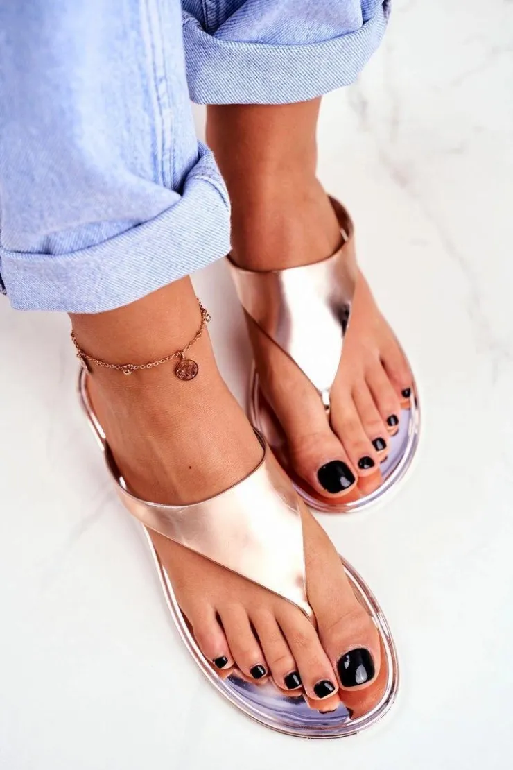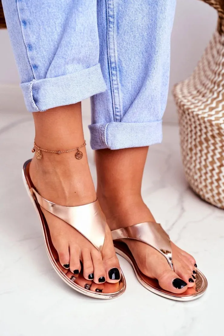 Damskie Boto Lu Boo Metaliczne Japonki Różowe Złoto Miny II gat.
