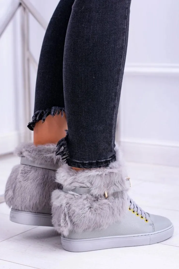 Damskie Boto Lu Boo Szare Botki z Naturalnym Futrem Gisele