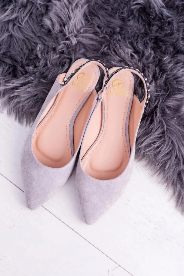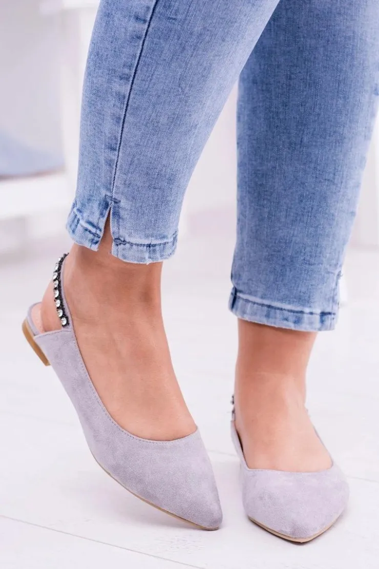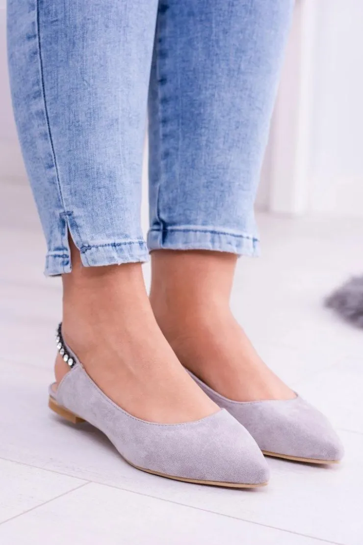 Damskie Boto Lu Boo Szare Zamszowe Balerinki w Szpic Cyrkonie Macron
