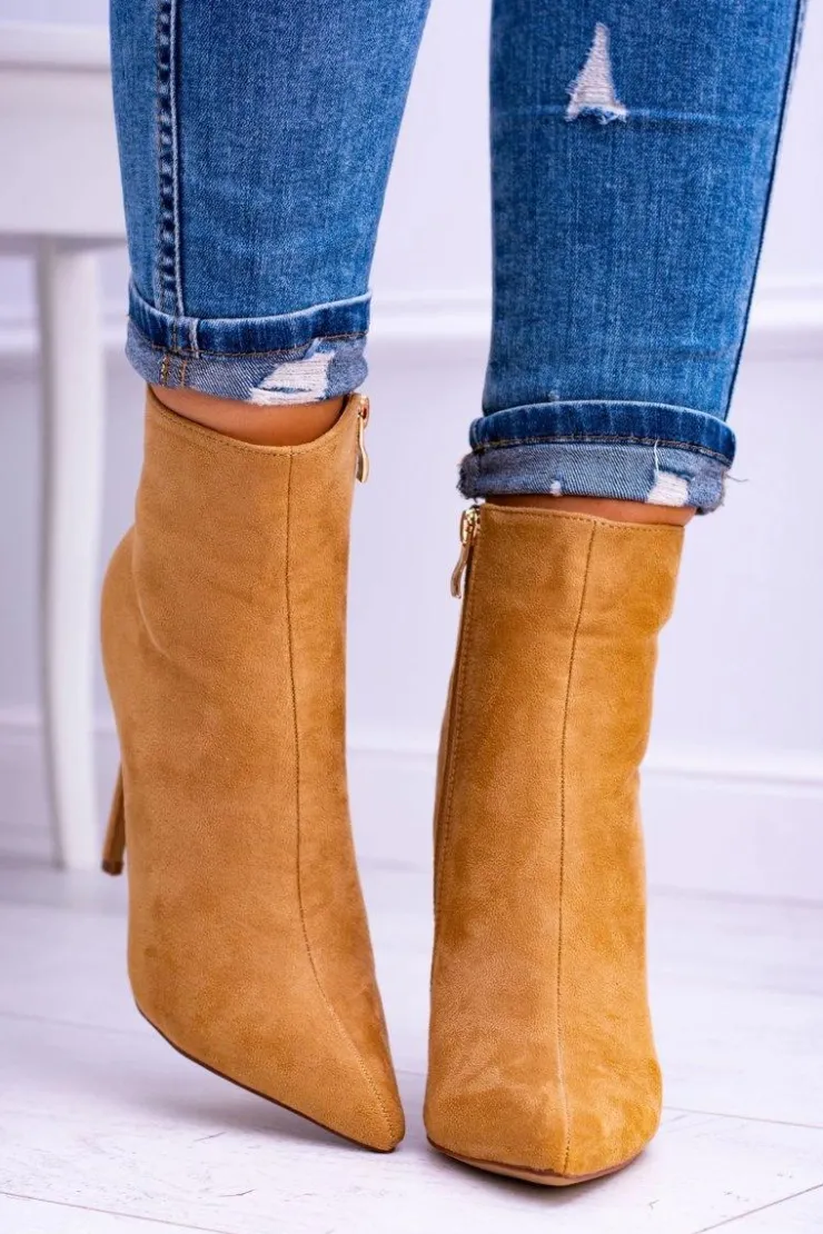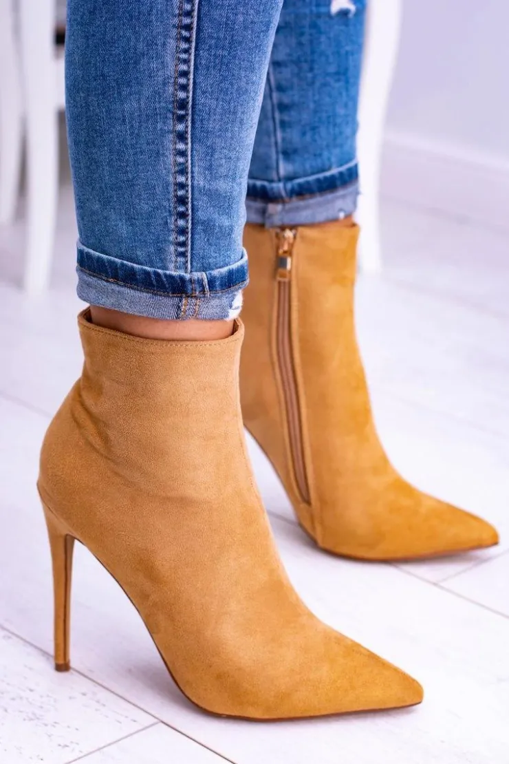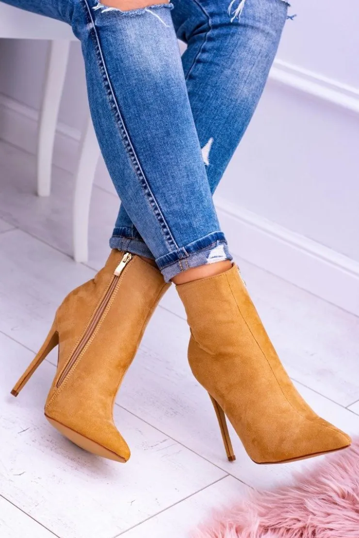 Damskie Boto Lu Boo Zamszowe Botki na Szpilce Camel Veneci