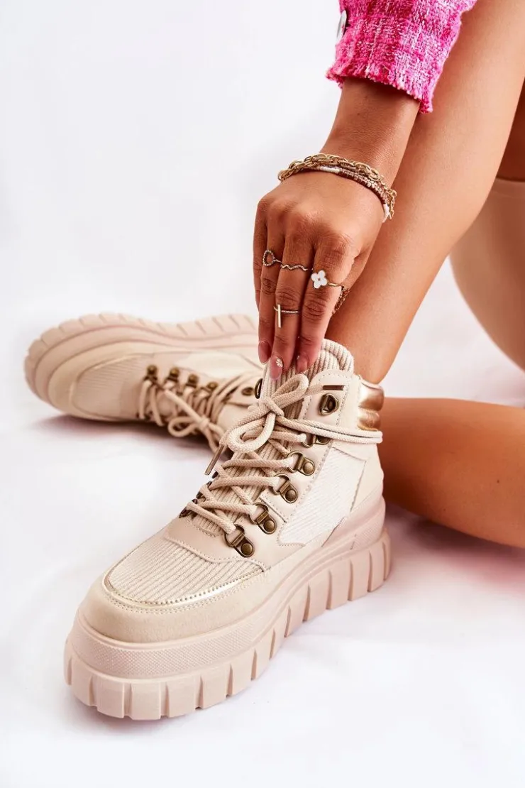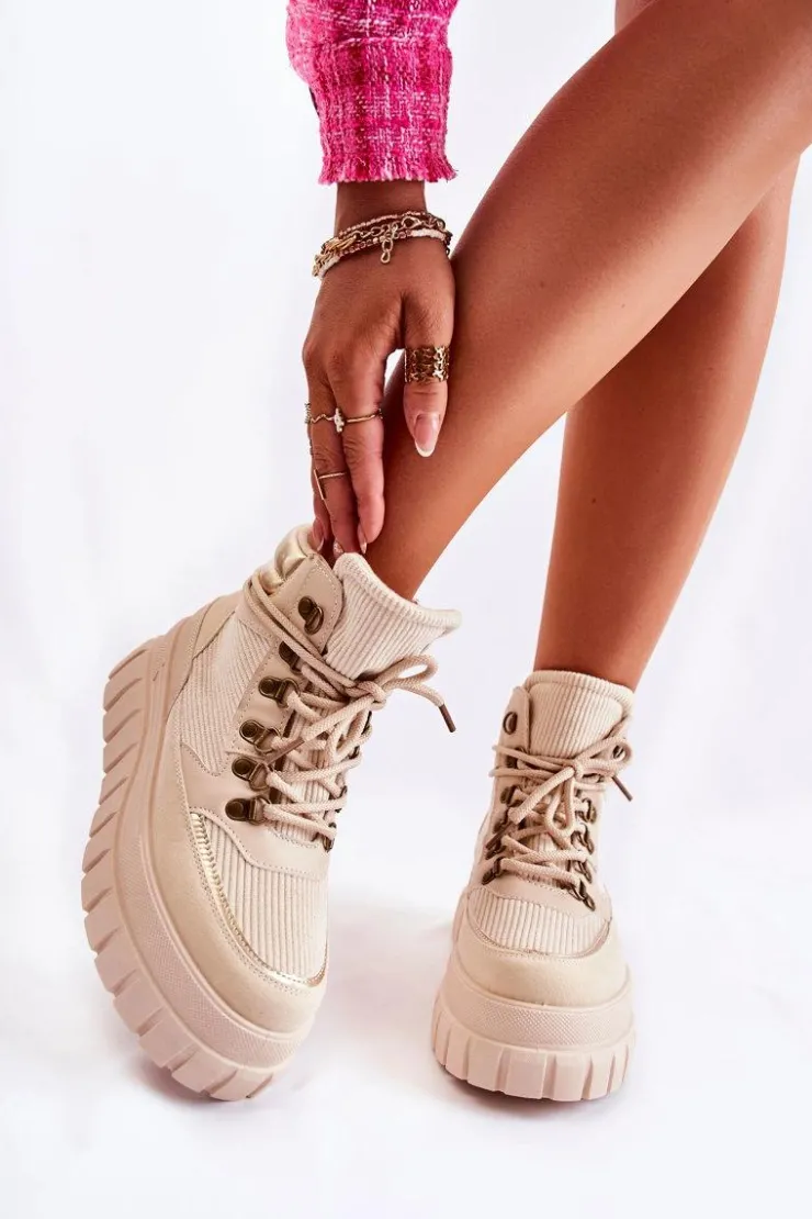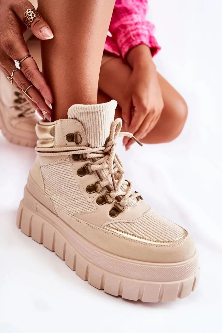 Modne botki damskie zostały wykonane z wierzchu z materiału tekstylnego. Posiadają wstawki z eko skóry. Model wiązany na okrągłe sznurowadła. Środek jest ocieplony kocem obuwniczym. Botki osadzone na platformie ze żłobieniami. Podeszwa antypoślizgowa. Nosek zaokrąglony. Powinnaś mieć ten model w swojej szafie! Nie czekaj dłużej – kup już dziś! Przy wyborze rozmiaru prosimy sugerować się tabelą rozmiarów.
