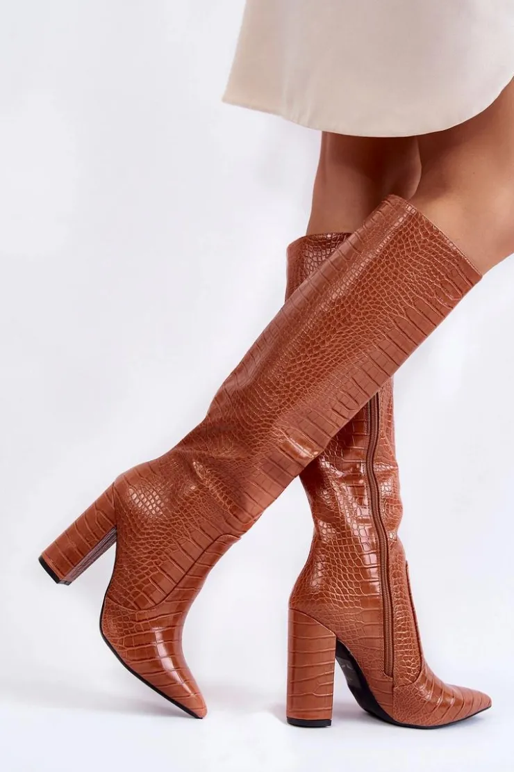 Damskie Boto Modne Kozaki Na Słupku Camel Constancy