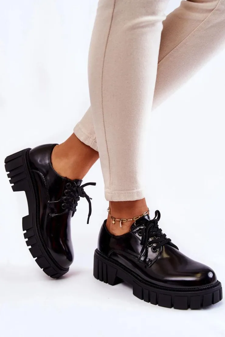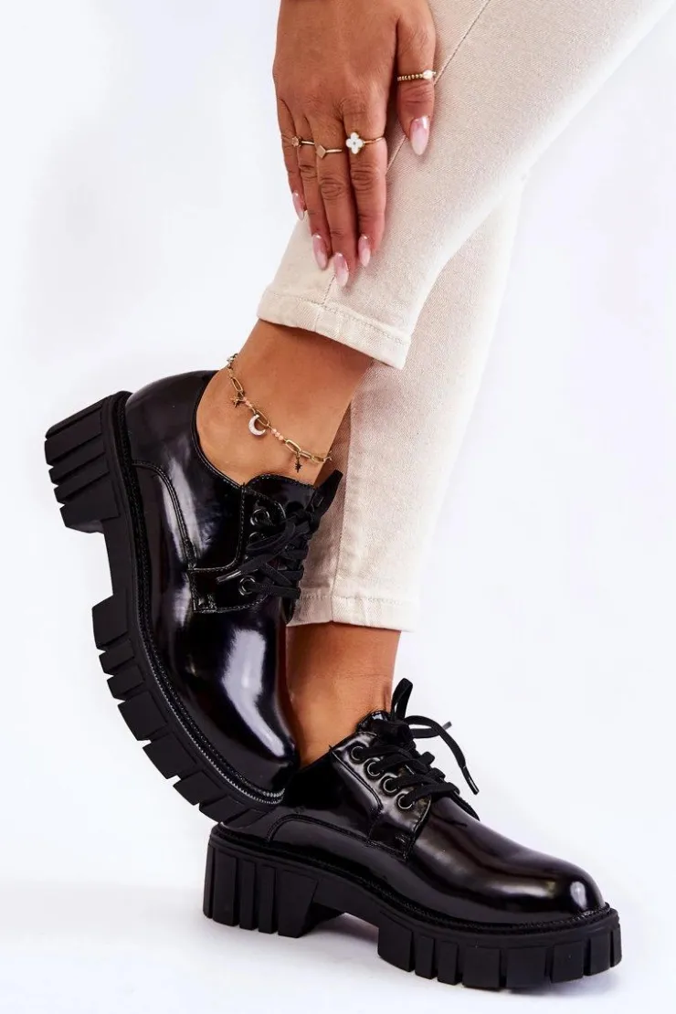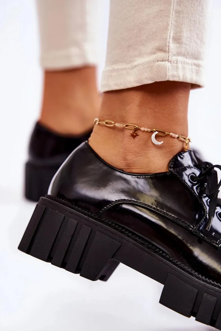 Półbuty zostały wykonane z wysokiej jakości eko skóry. Miękka wkładka ze skóry naturalnej to gwarancja komfortu. Elastyczne wiązanie sprawia, że można dopasować je odpowiednio do tęgości nogi. Niewysoki, masywny obcas zapewni wygodę. Koniecznie powinnaś mieć ten model w swojej szafie! Podczas wyboru rozmiaru prosimy sugerować się tabelą rozmiarów.