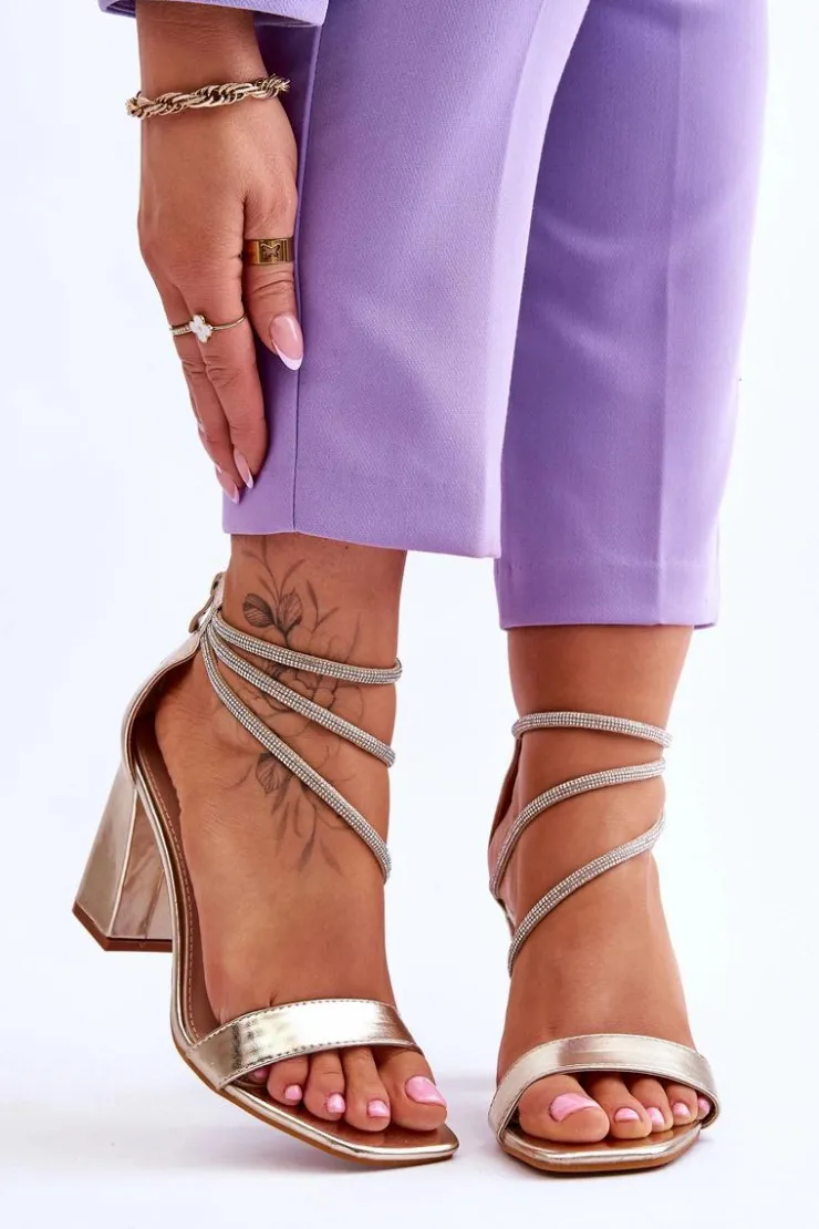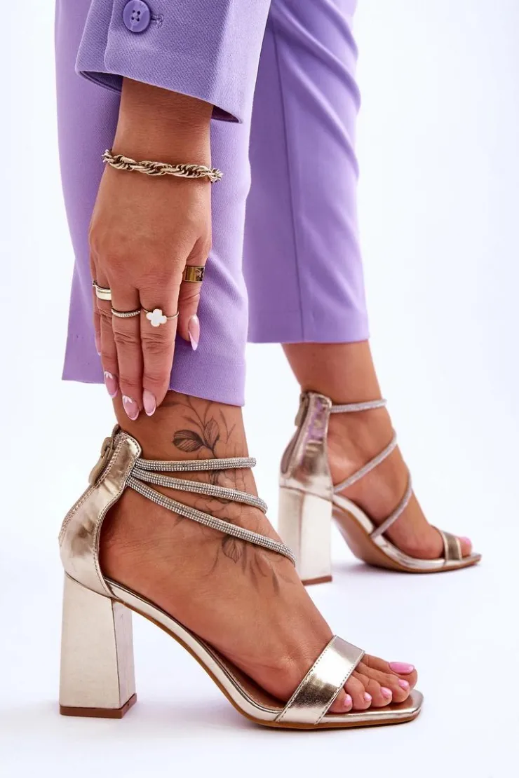 Cudne sandały na obcasie w postaci słupka zostały wykonane z eko skóry. Sandałki posiadają na wysokości kostki paseczki z dżetami imitującymi cyrkonie. Nosek odkryty, kwadratowy. Wkładka z eko skóry zapewni komfort podczas użytkowania. Model ten jest zapinany na suwak z tyłu cholewki. Sandałki z pewnością wykorzystasz do wielu stylizacji! Przy wyborze rozmiaru prosimy sugerować się tabelą rozmiarów.