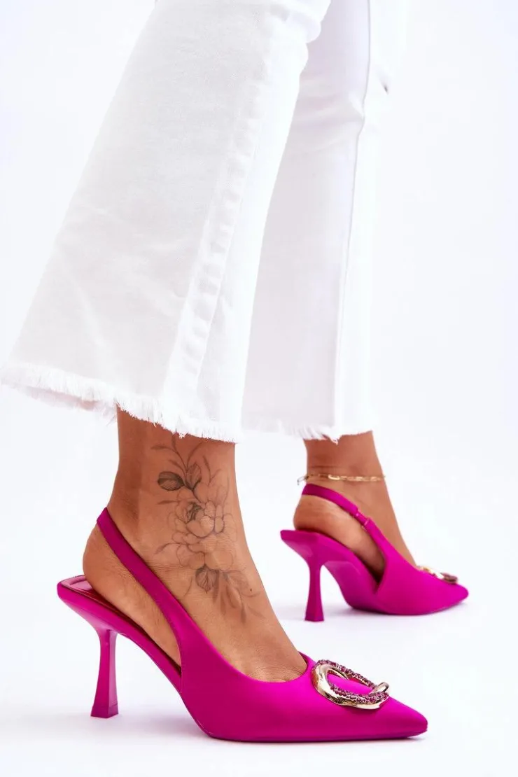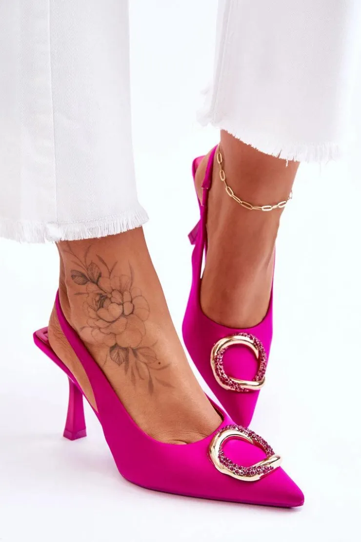 Niesamowite szpilki z pewnością przypadną do gustu niejednej miłośniczce modowych inspiracji! Zostały wykonane z materiału tekstylnego. Na przodzie znajduje się elegancka ozdoba z dżetami imitującymi cyrkonie. Nosek w szpic oraz obcas w postaci szpilki optycznie wysmuklą nogi. Miękka wkładka została wykonana z eko skóry. Przy wyborze rozmiaru prosimy sugerować się tabelą rozmiarów.